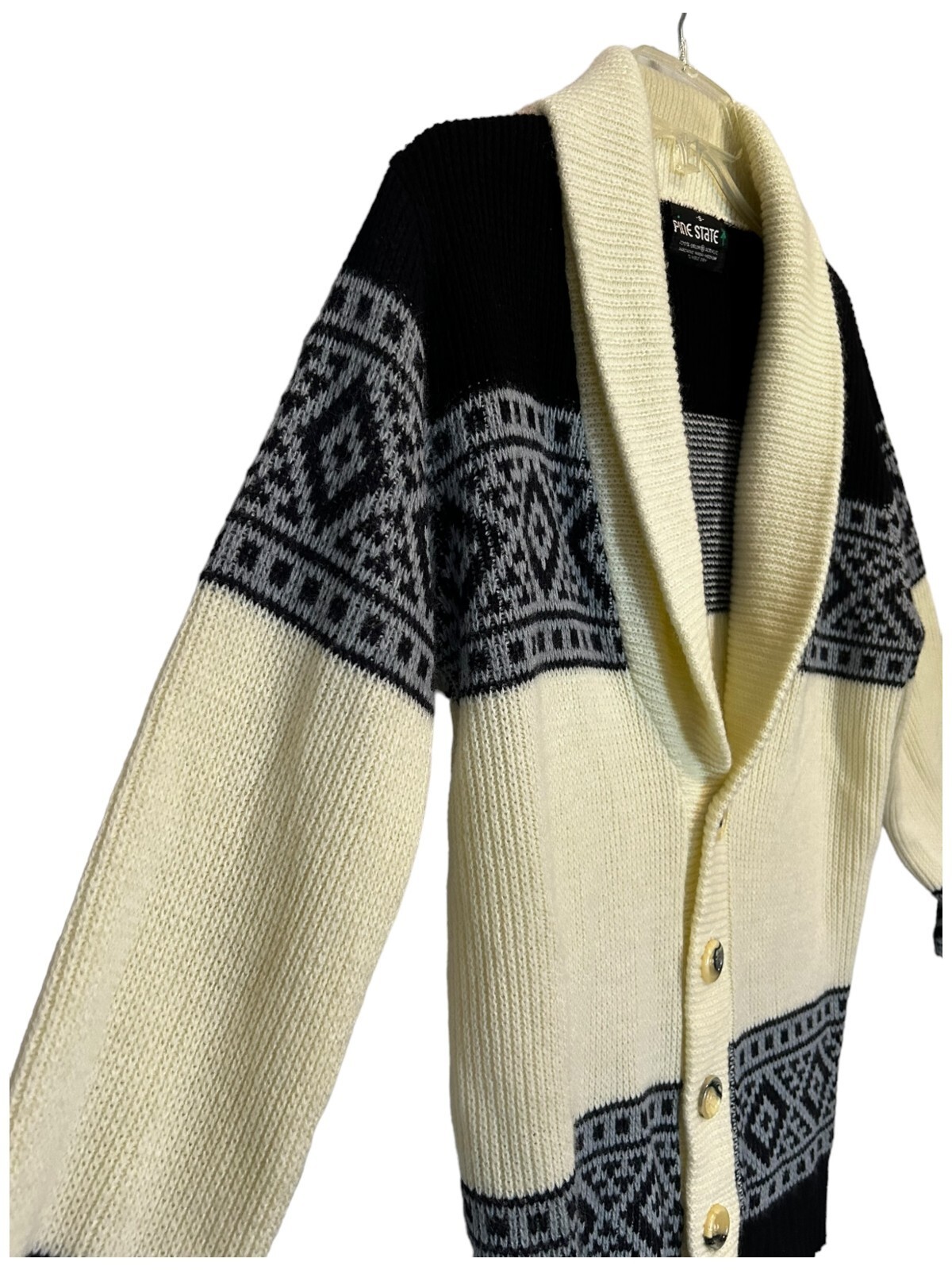 1980's pine state men's patterned knit button down cardigan sweater SMALL