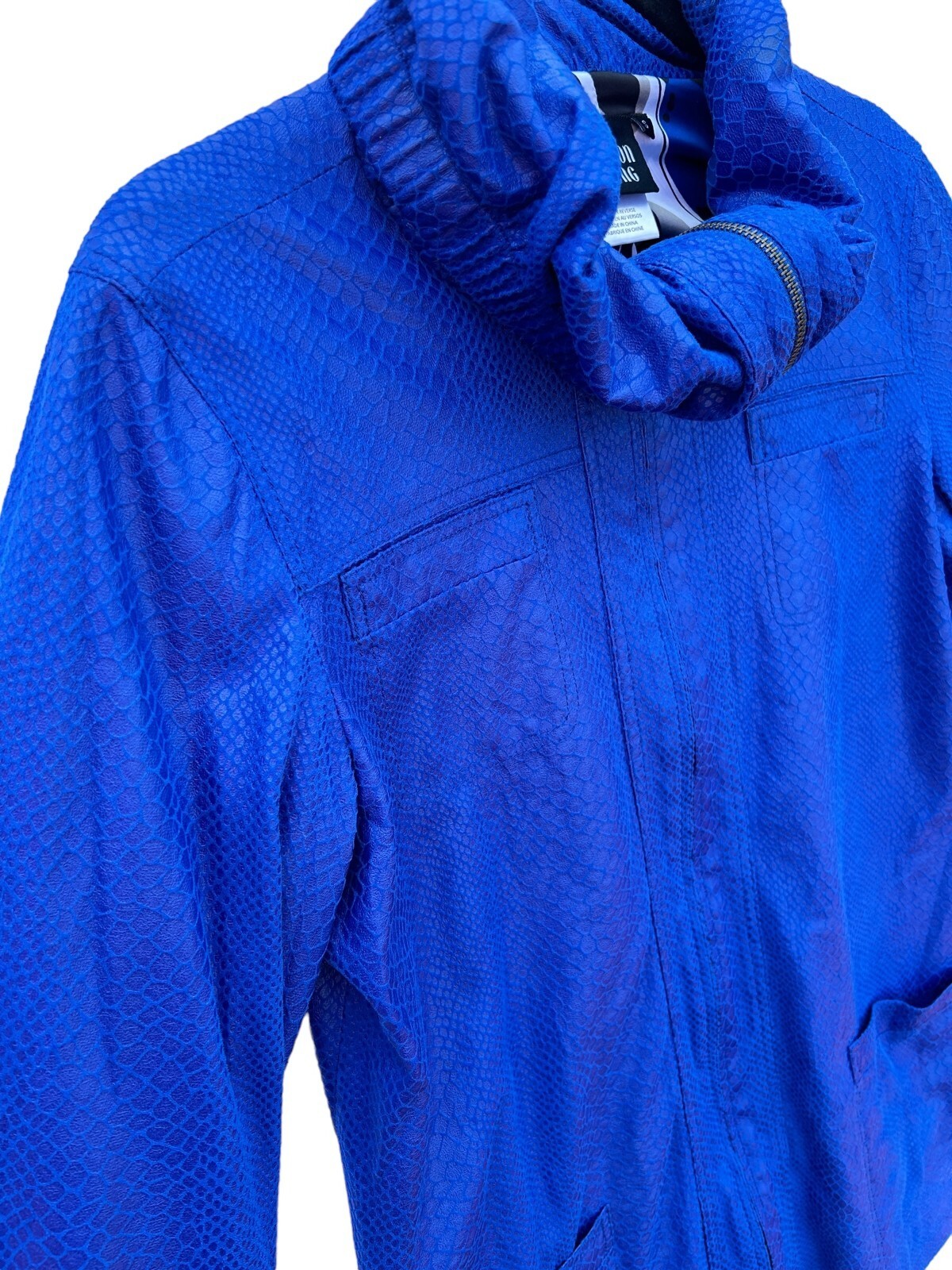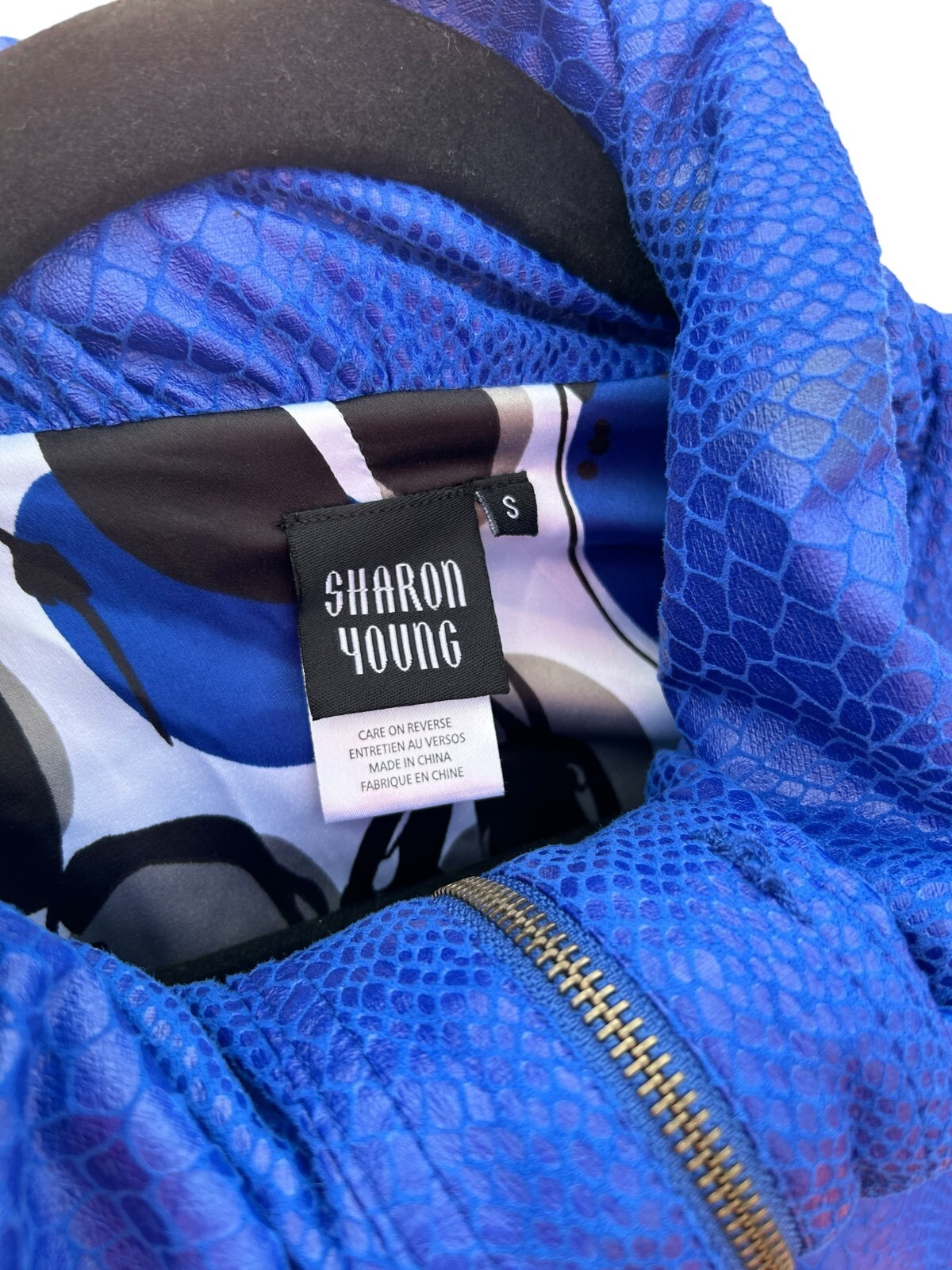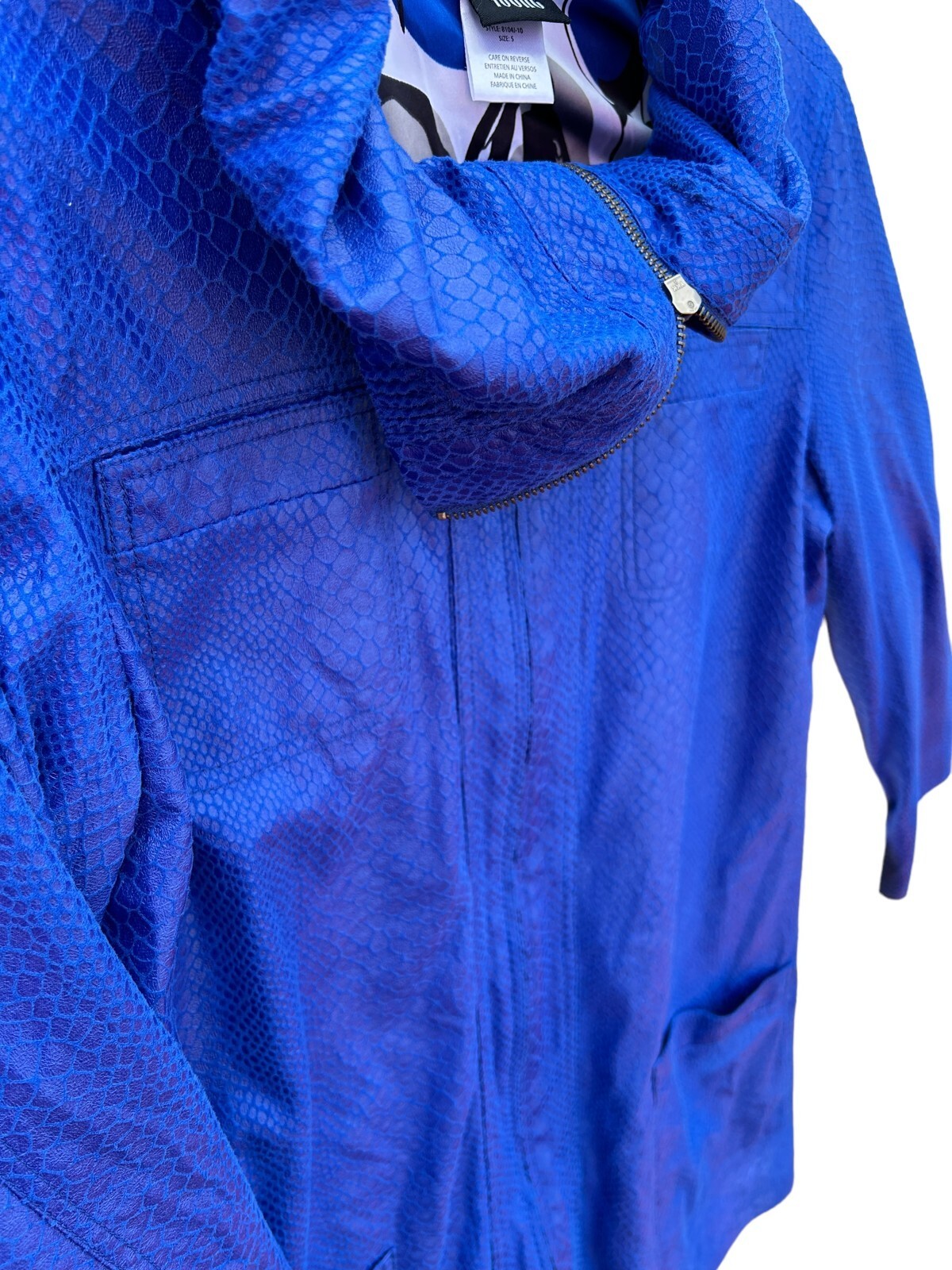 SHARON YOUNG Coat Faux snake bright blue zip women's small 8104J-10