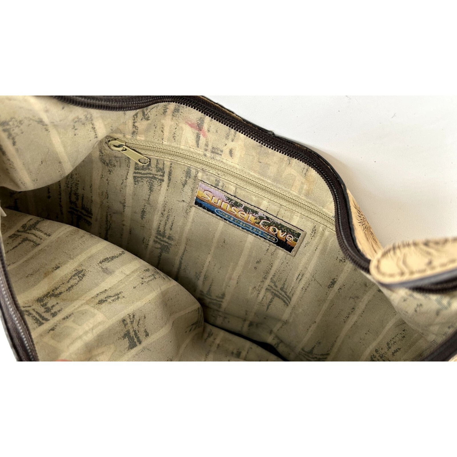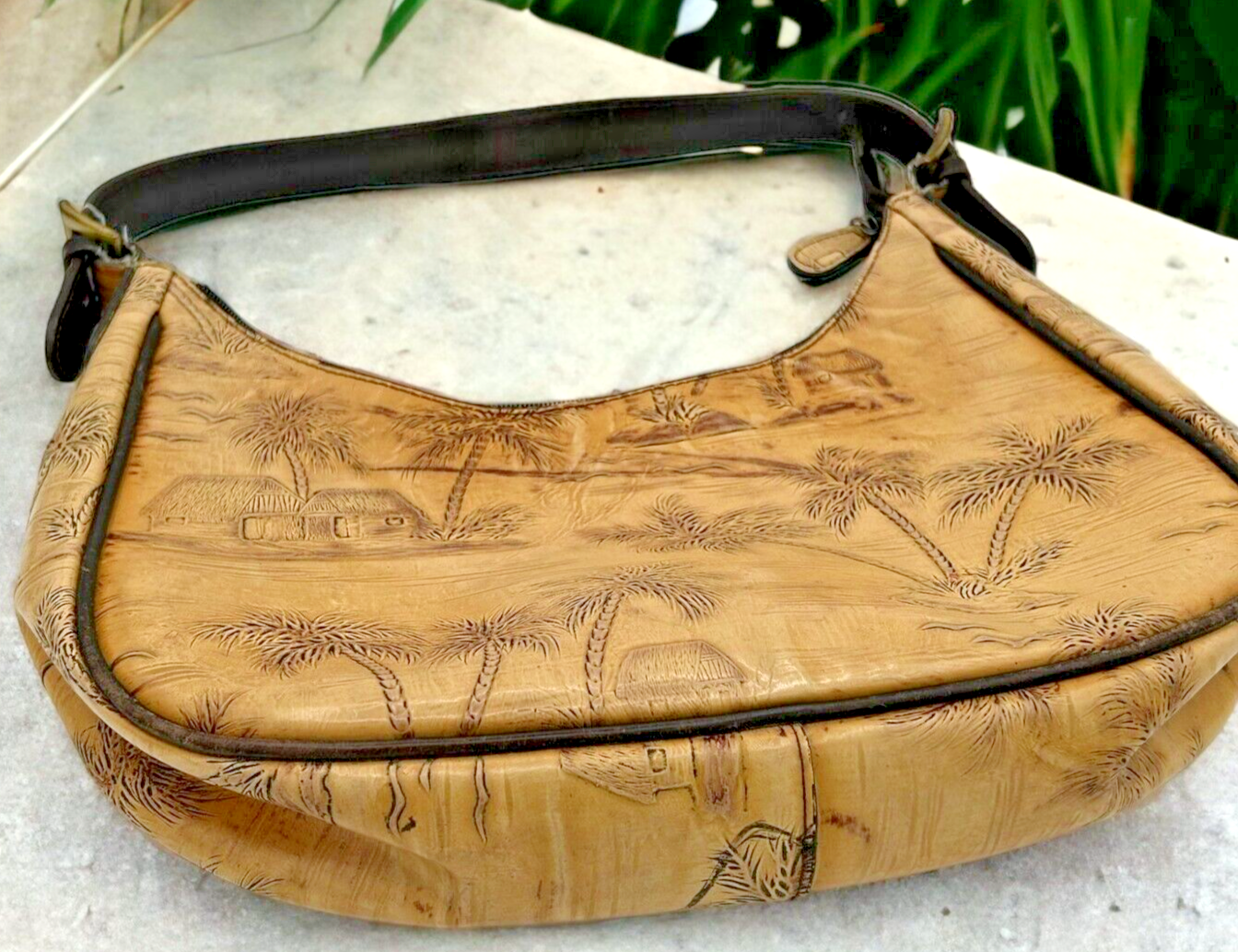 Sunset Cove island life handbag purse palm trees huts bamboo look