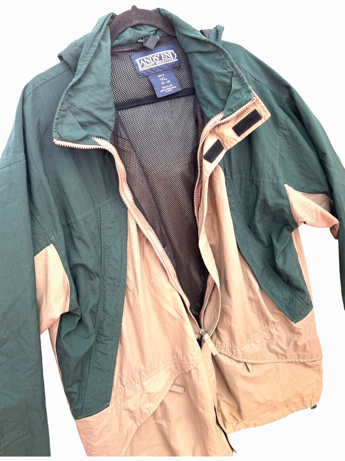 Land's End Men's XL 46-48 Regular Green Beige Hooded Jacket