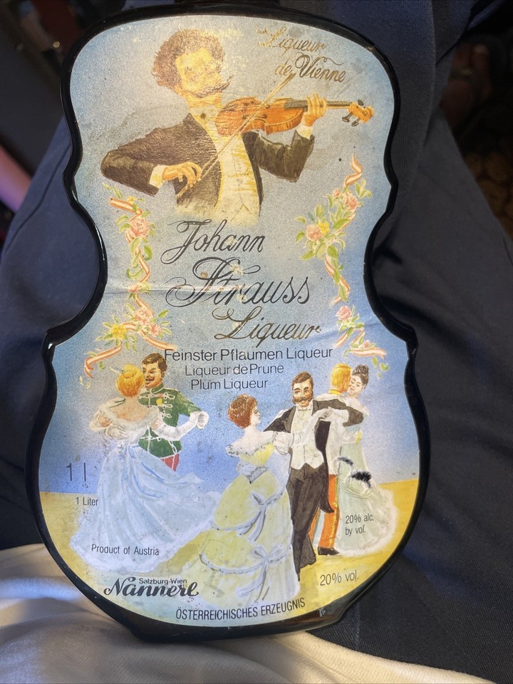 RARE Violin Johann Strauss Finest Plum Liqueur EMPTY Decanter Bottle Violist Gif