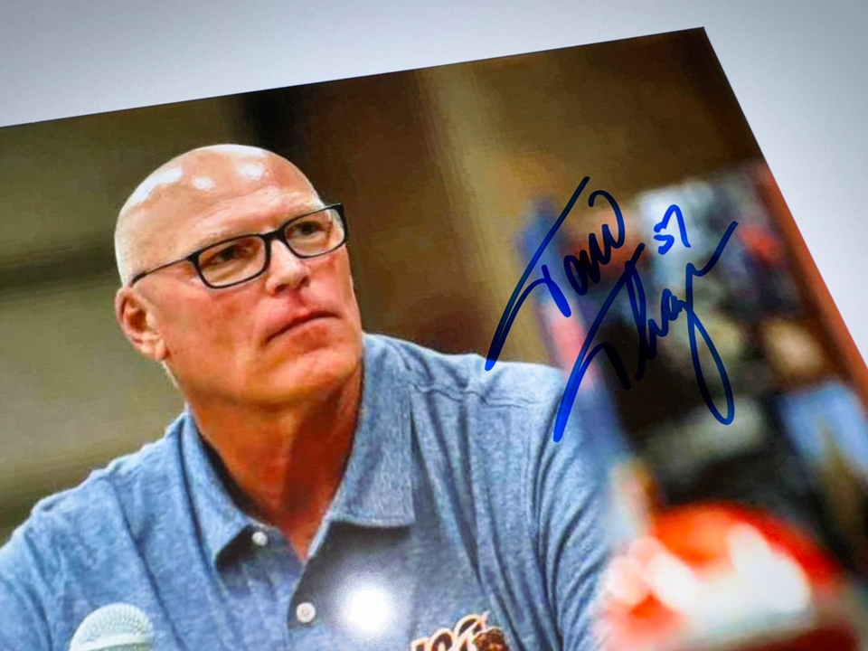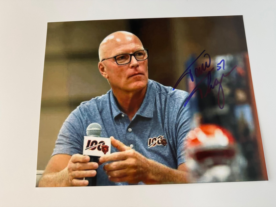 The product is an 8x10 signed photo of Tom Thayer, a former player for the Chicago Bears in NFL football. This original autographed photo is a unique collectible for fans of the team or the player. With the signature of Tom Thayer, this photo holds value for sports memorabilia collectors looking to add a piece of football history to their collection.