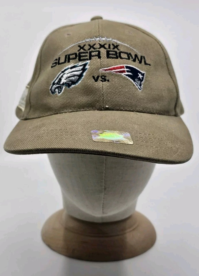 Super Bowl Strapback Hat XXXIX 2005 Beige Strapback Football NFL Eagles Patriots
