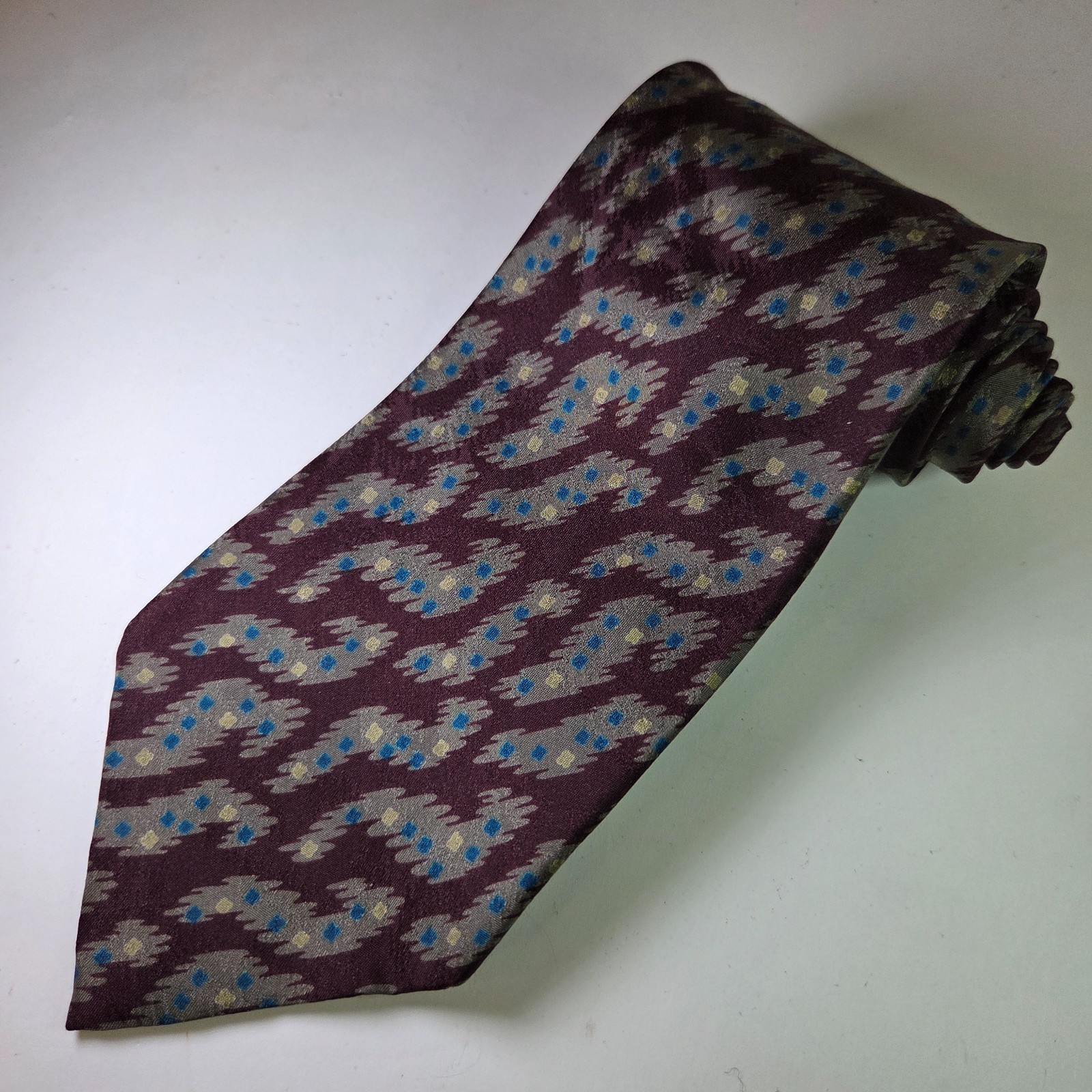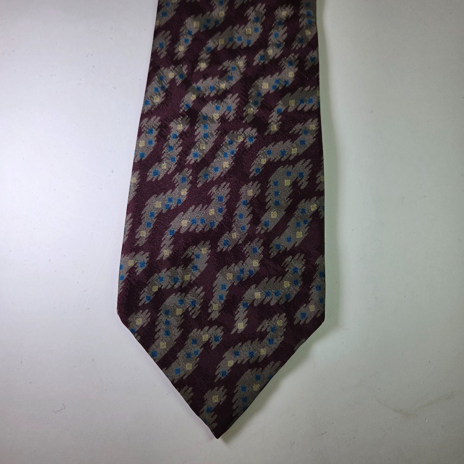 Giorgio Armani Cravatte Tie Burgundy Gray Blue Silk Abstract Geometric Italy