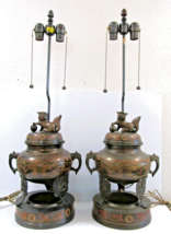 Matched Pair of 1960s Marbro Censer Lamp Foo Dogs and Elephant Handles Sculpture Table Lamps