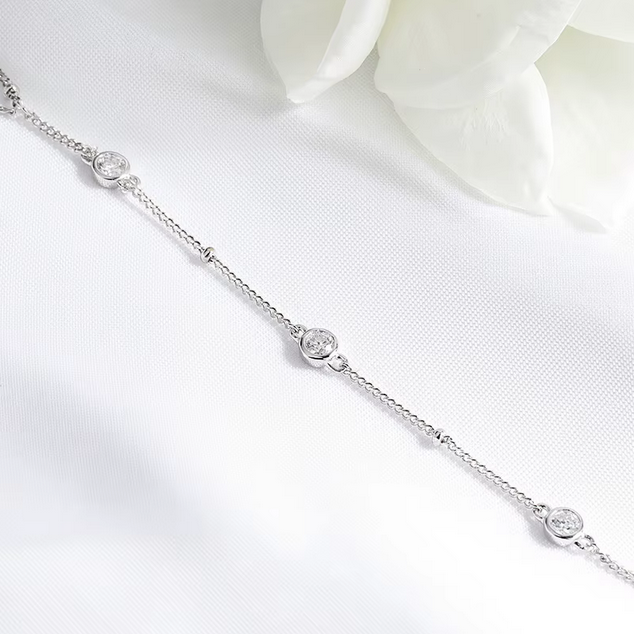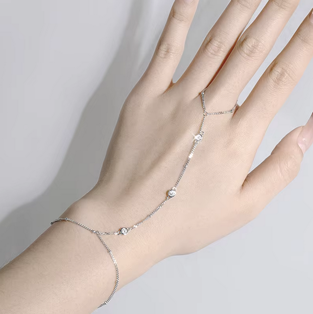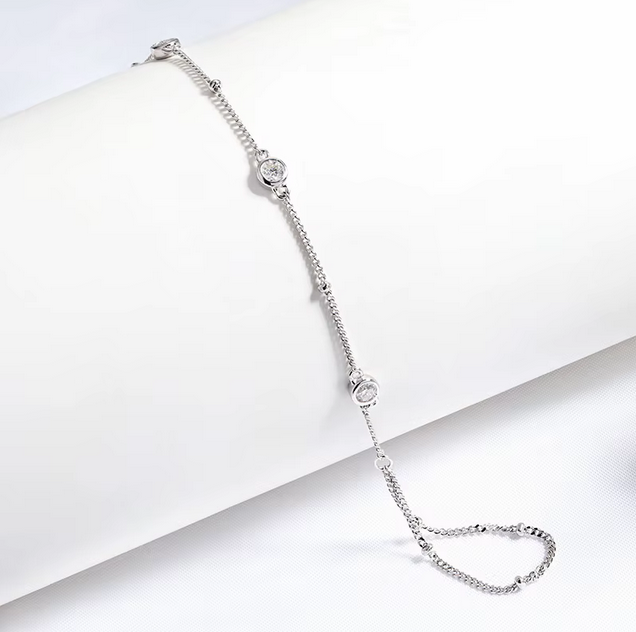 Authentic 18K 925 Sterling Silver 0.3CT Moissanite Bracelet Chain Ring