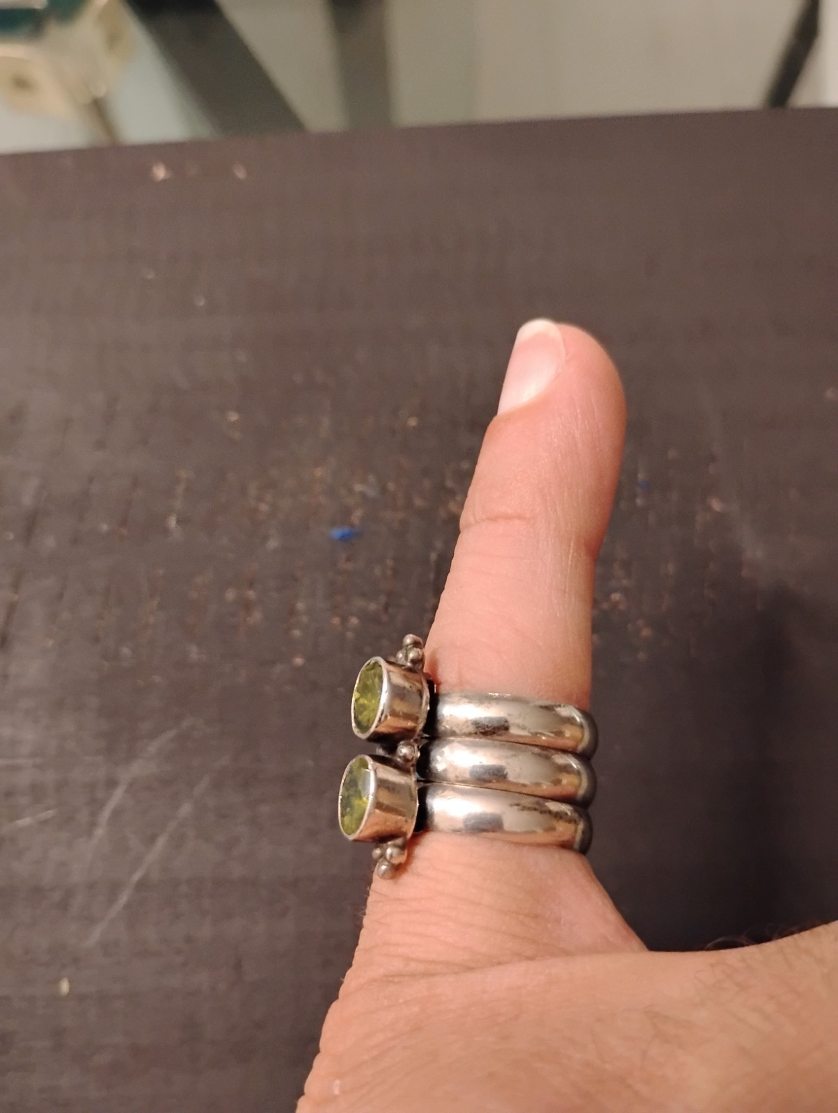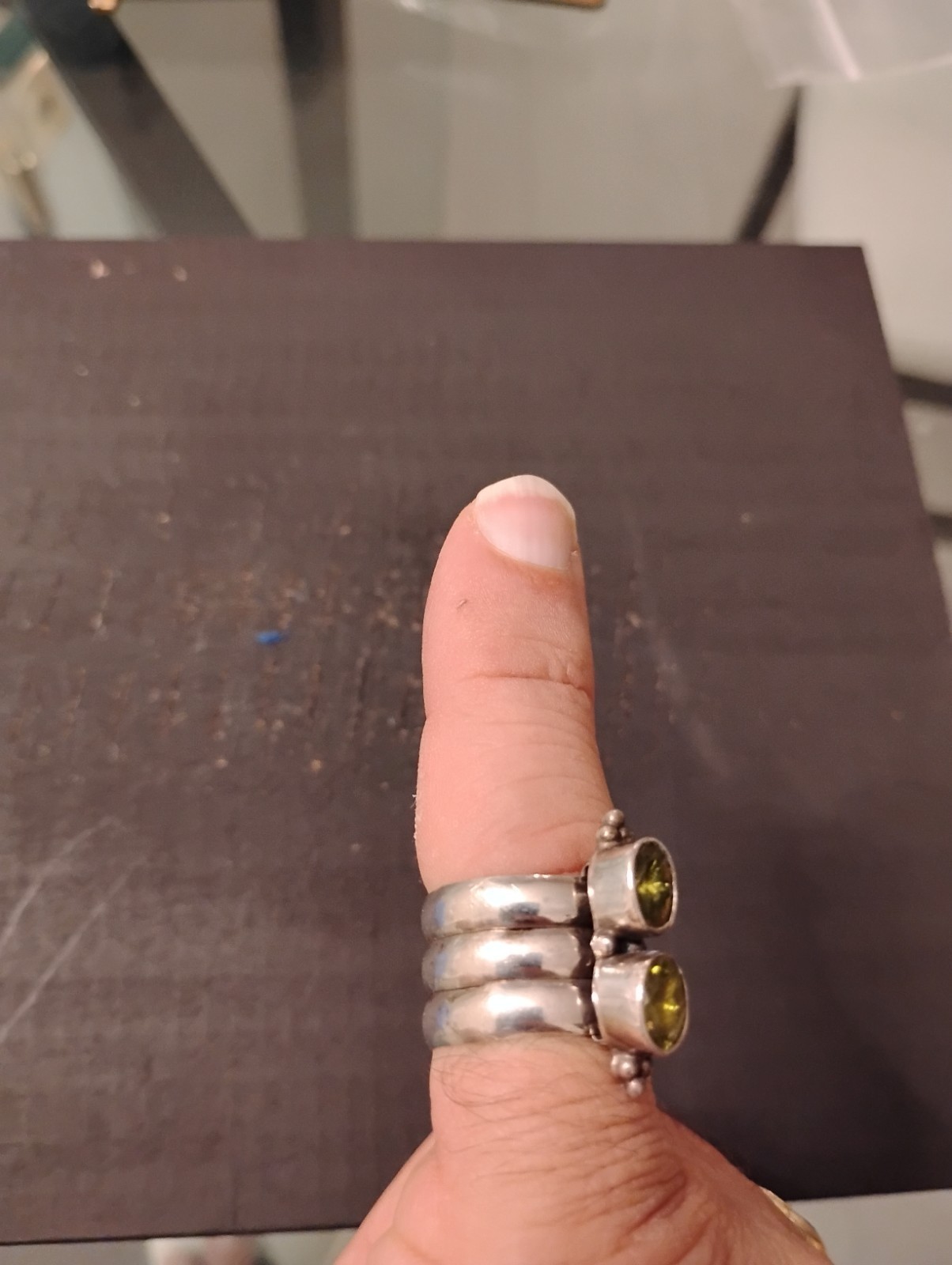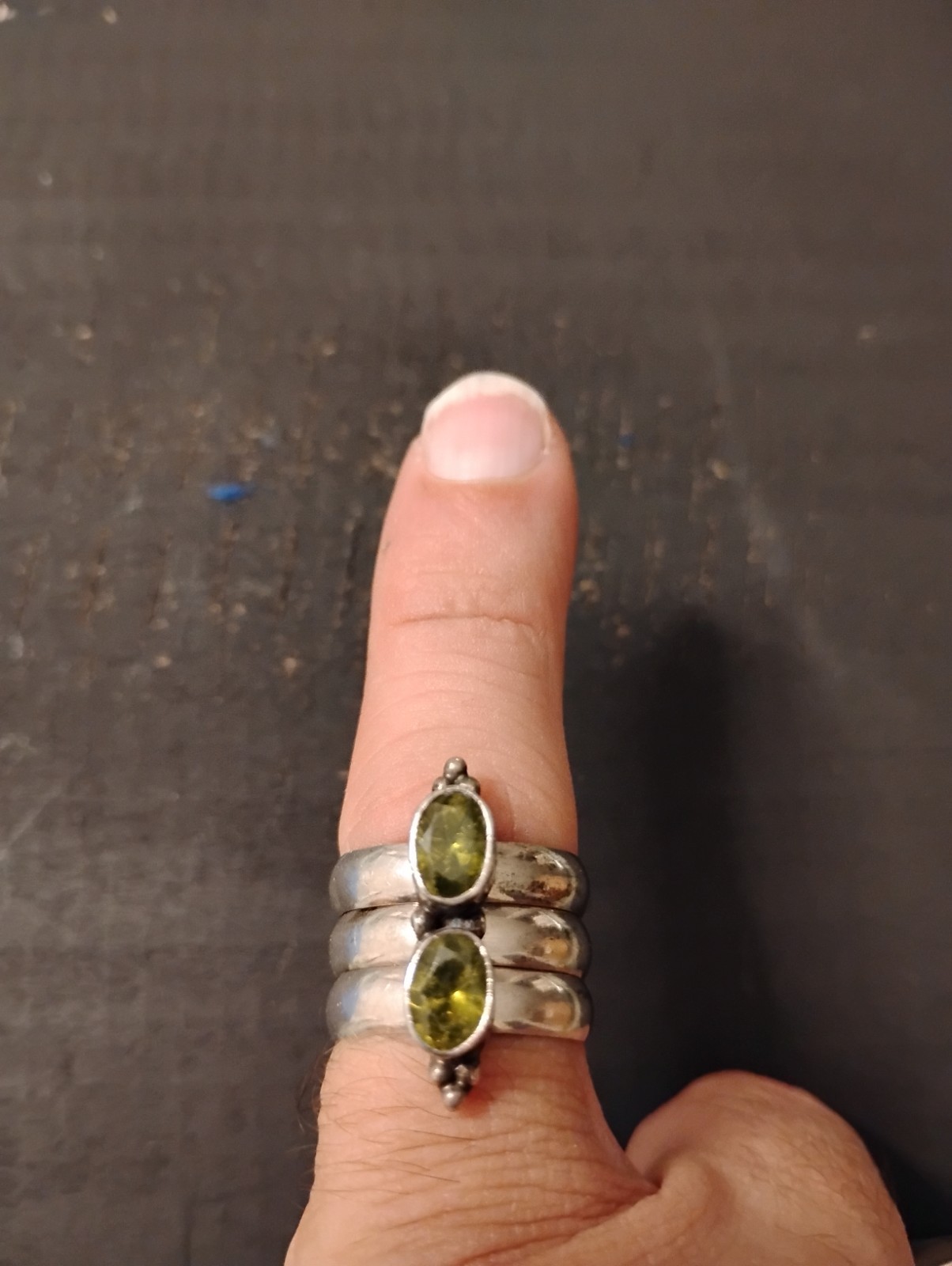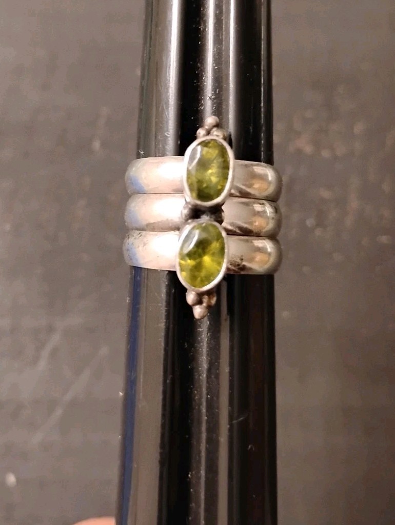 925 Sterling Silver Triple Band Green Tourmaline Ring Sz 8 Free Shipping