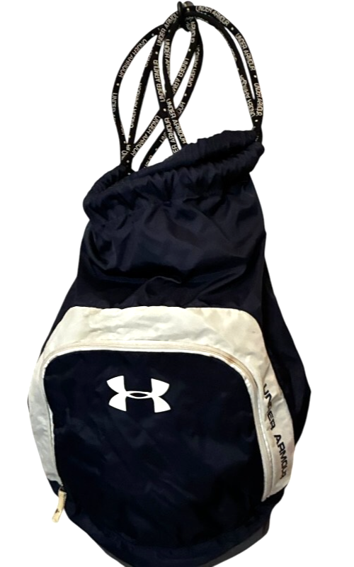 under armour drawstring cinch backpack baseball gym bag navy blue & white