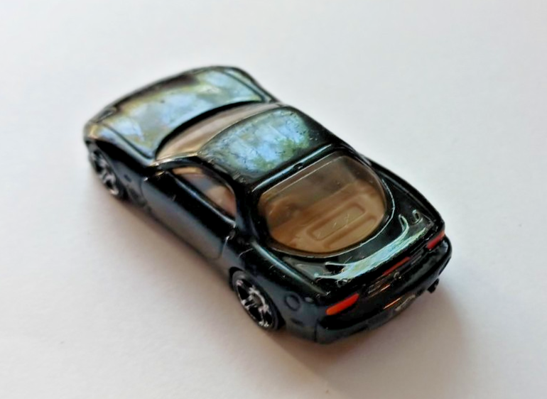 Hot Wheels 1995 Mazda RX-7 Sport Coupe Black with Tan Interior, 1/64 Scale Japanese Sports Car.