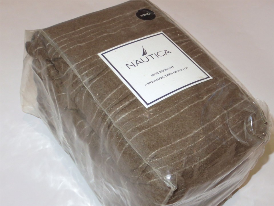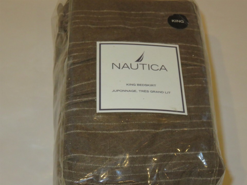 Nautica Aspen Ridge King Brown Chalk Stripe Tailored Bedskirt Wool Blend NEW
