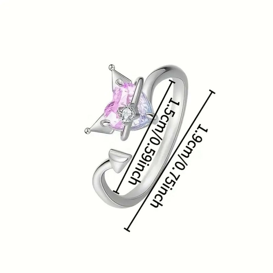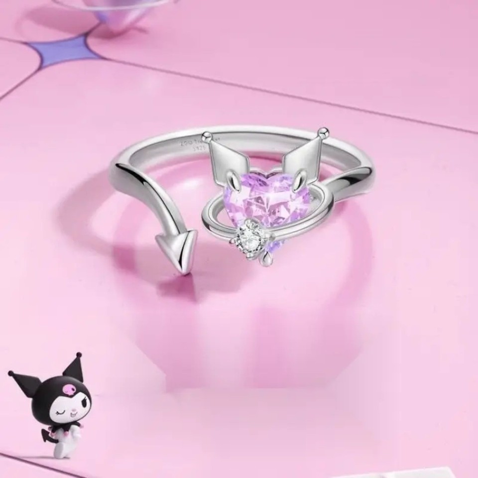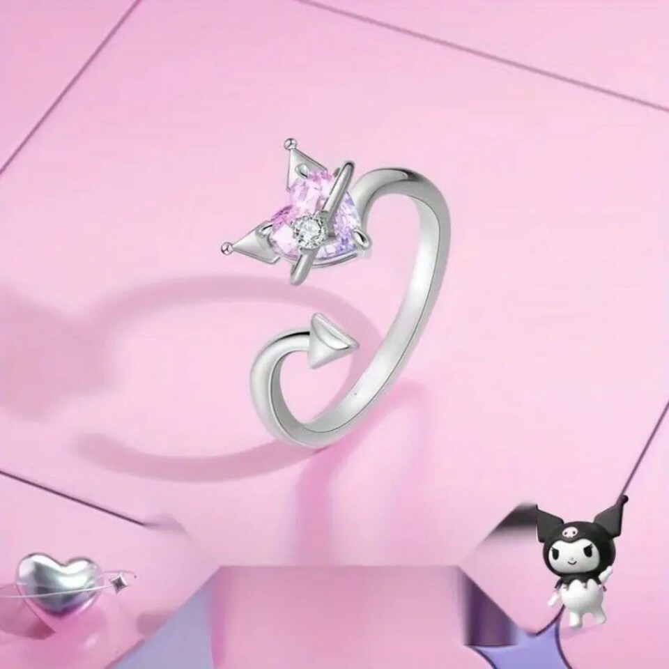 Adjustable Sanrio Kuromi Silver toned Ring – Cute Pastel Goth Heart Jewelry