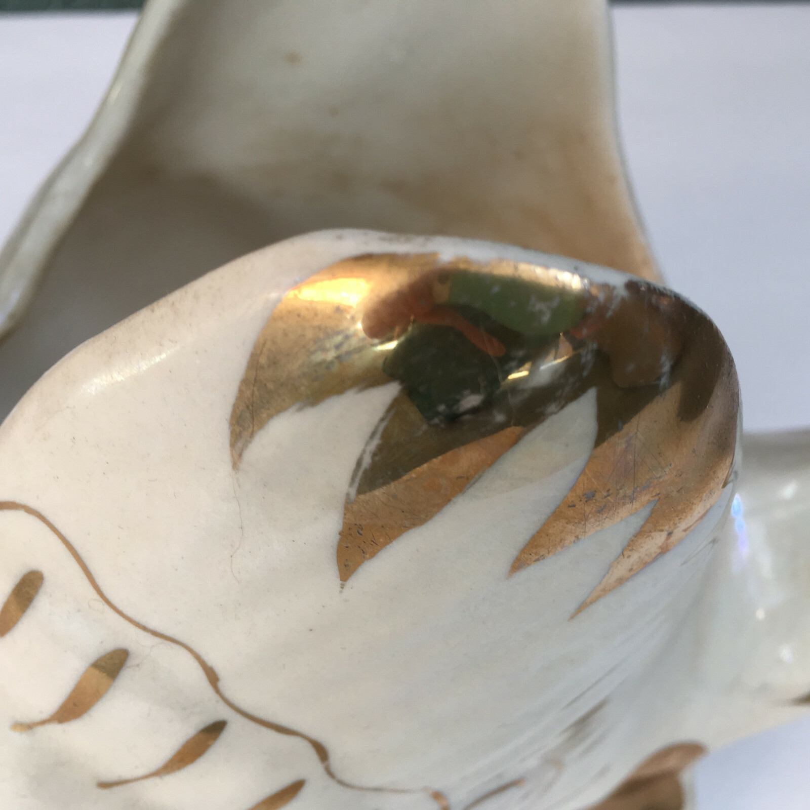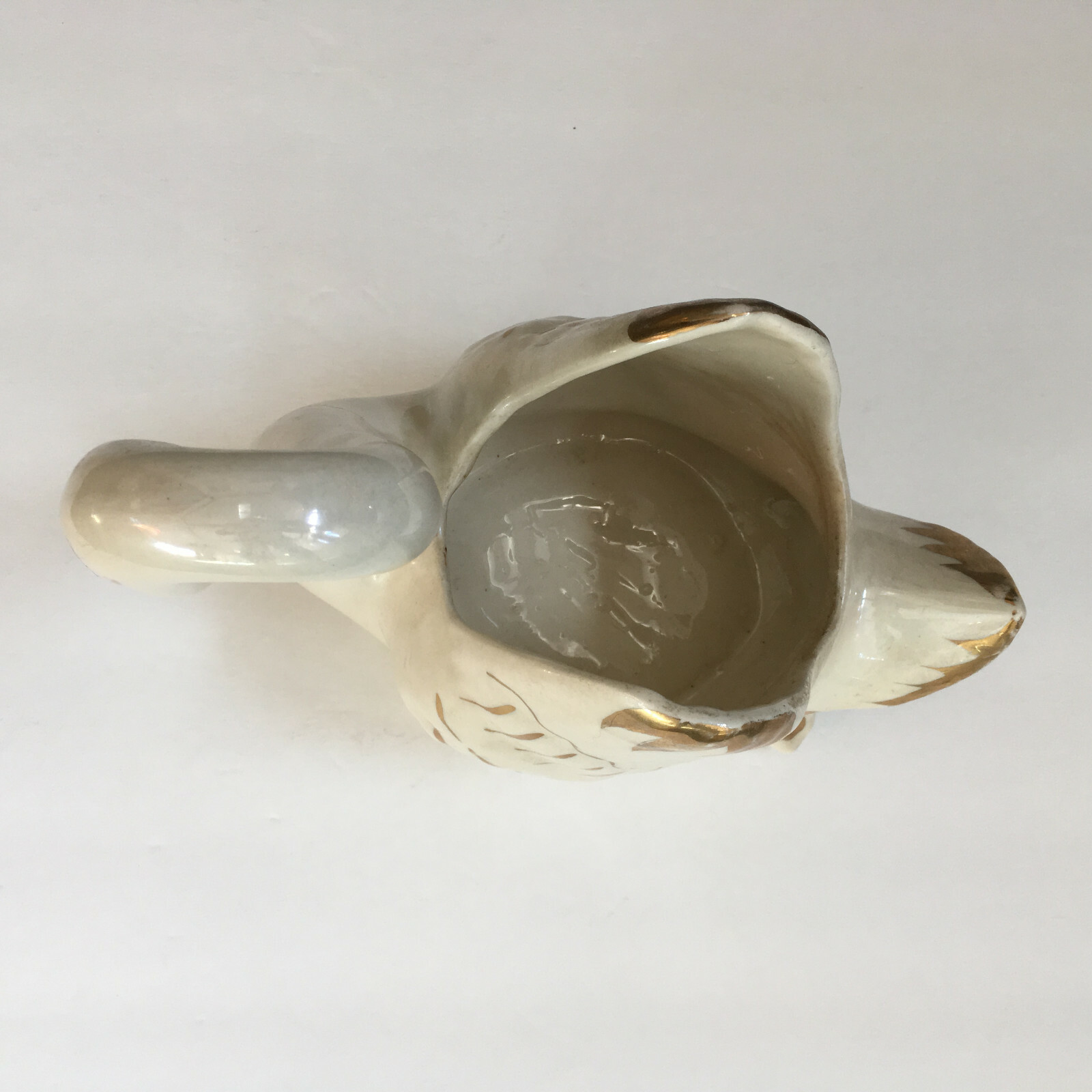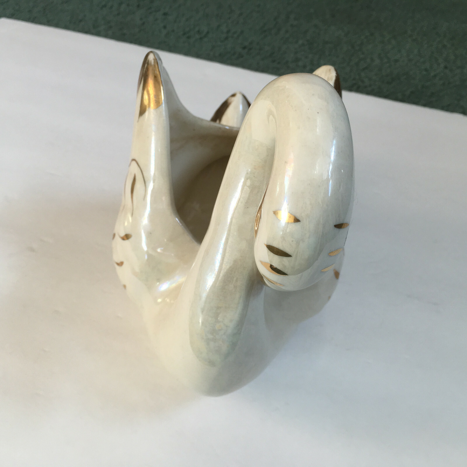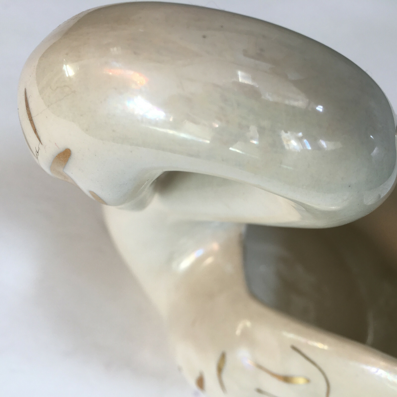 Vintage decorative pottery planter white swan gold trim indoor table dislplay