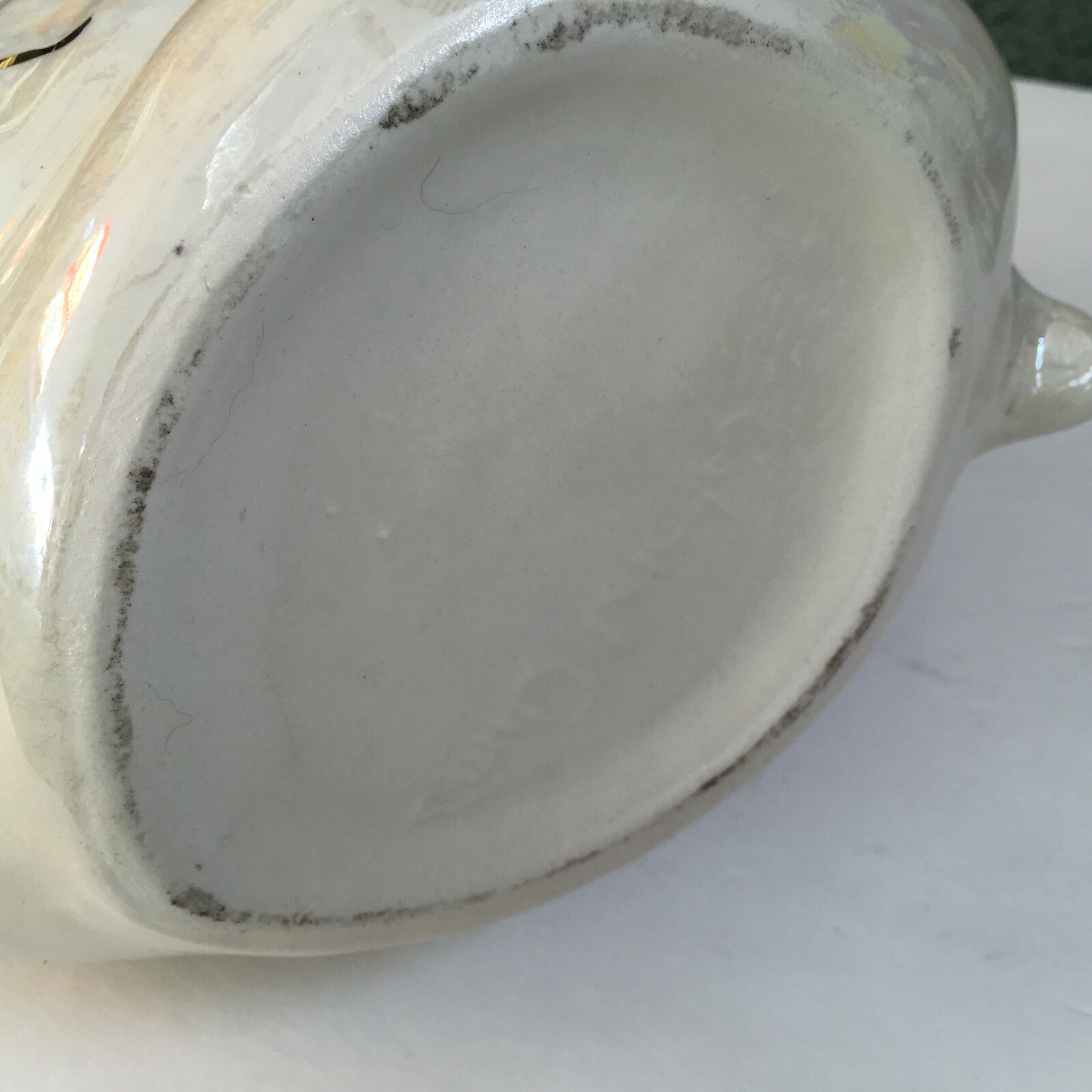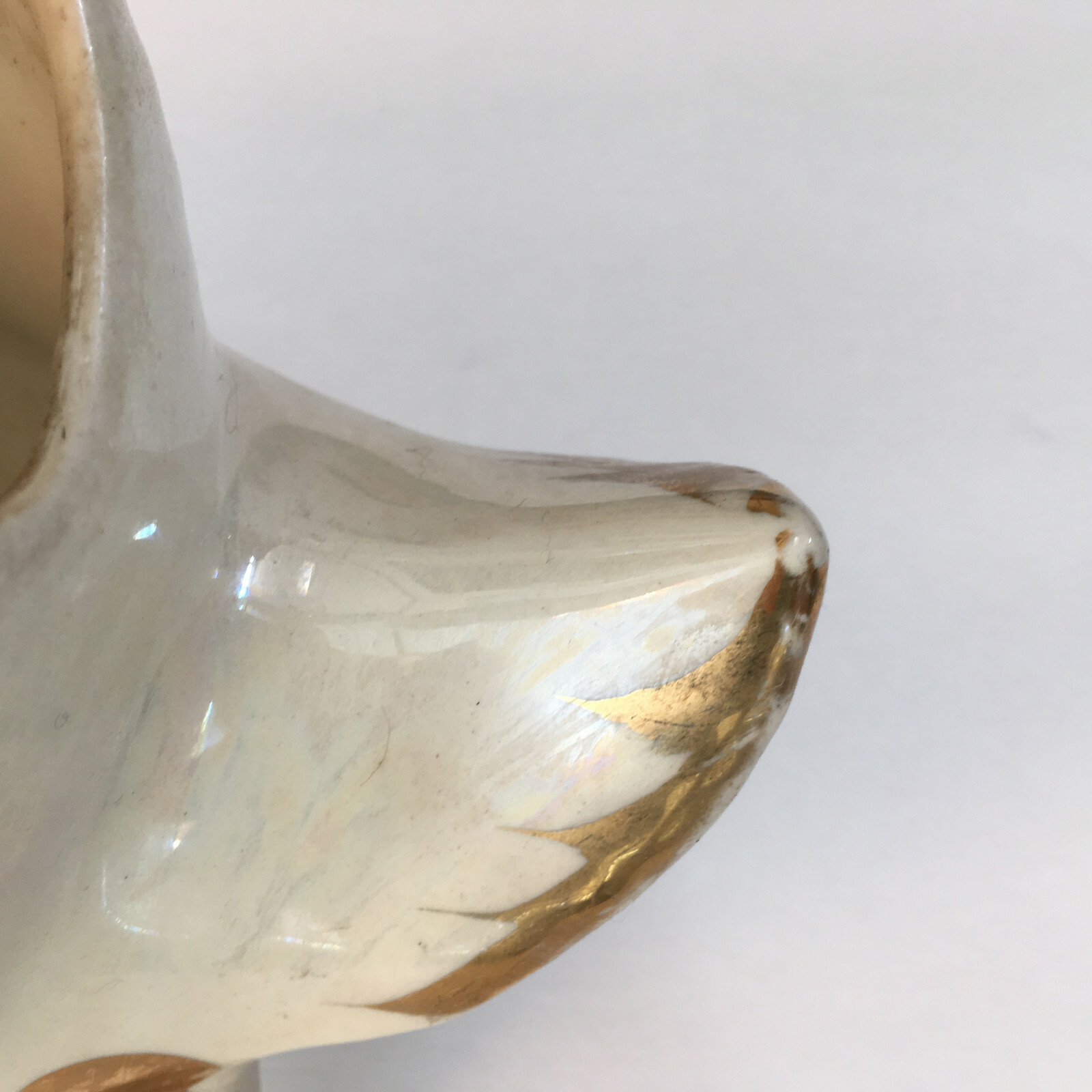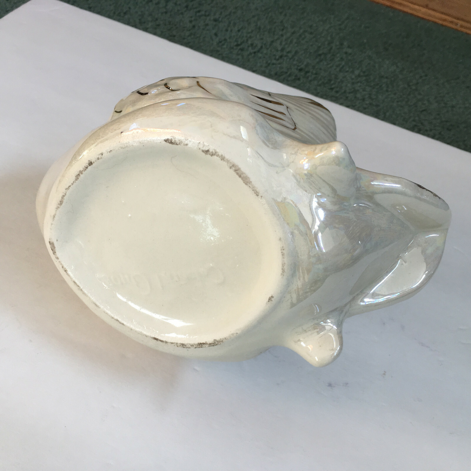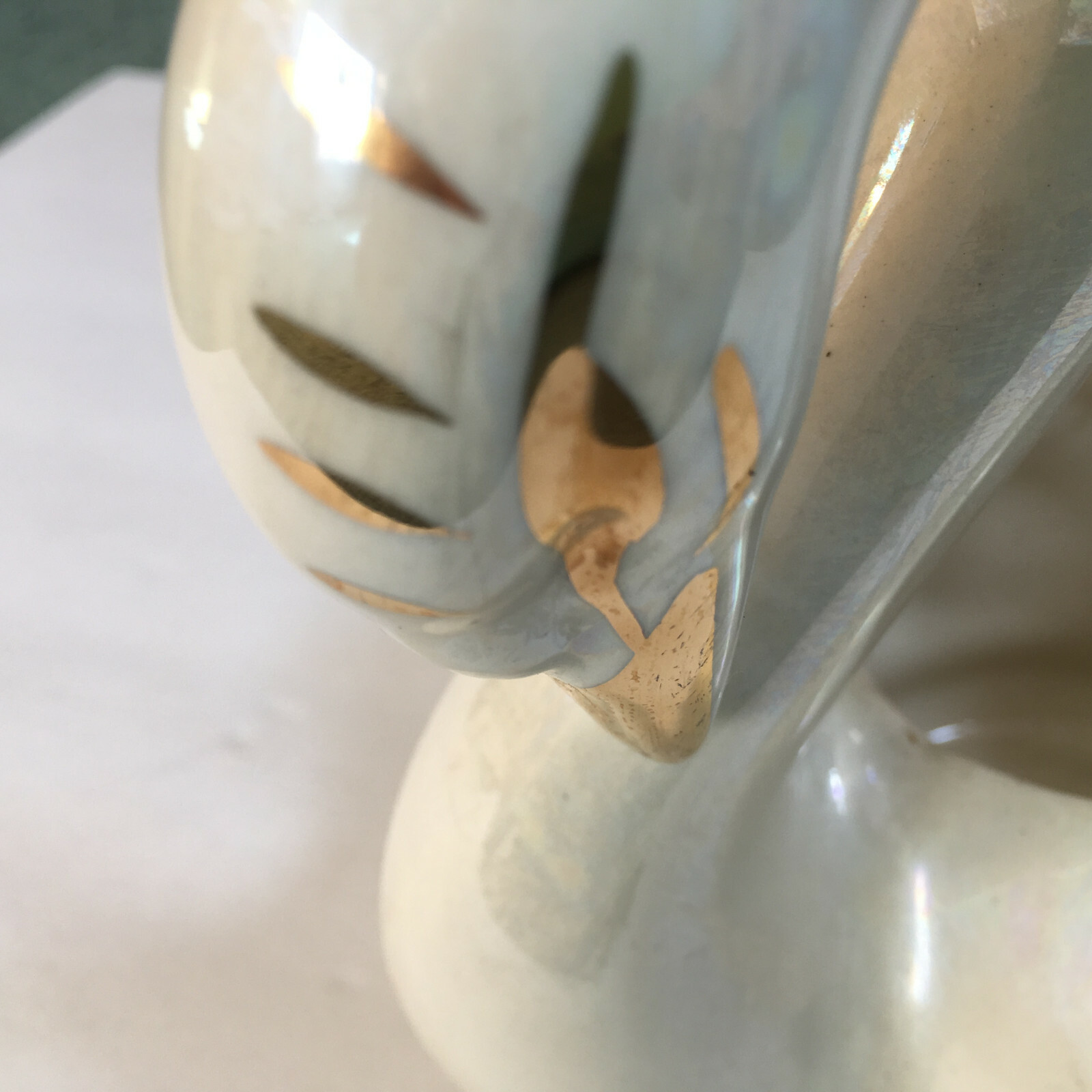 Vintage decorative pottery planter white swan gold trim indoor table dislplay