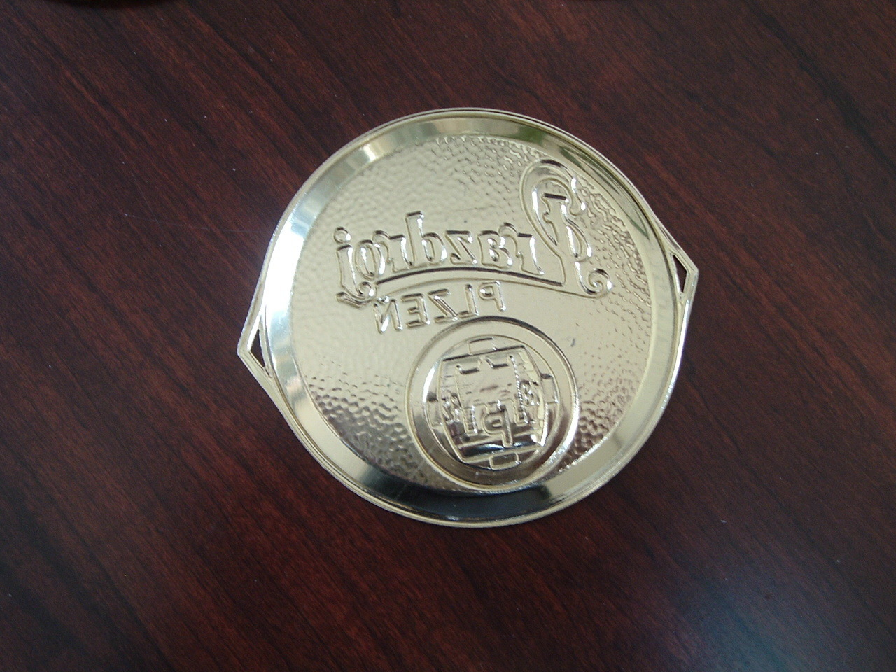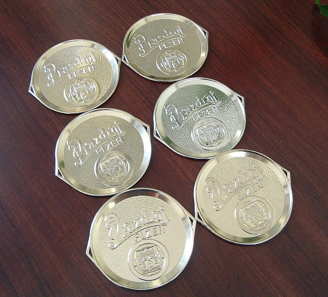 Set of six tin Prazdroj Plzen beer coasters from Czechoslovakia.