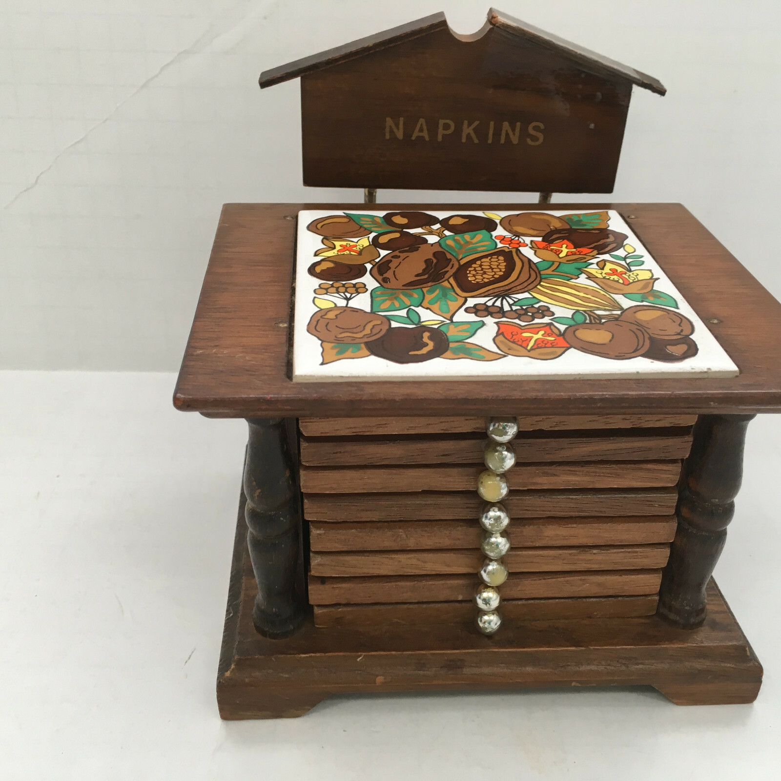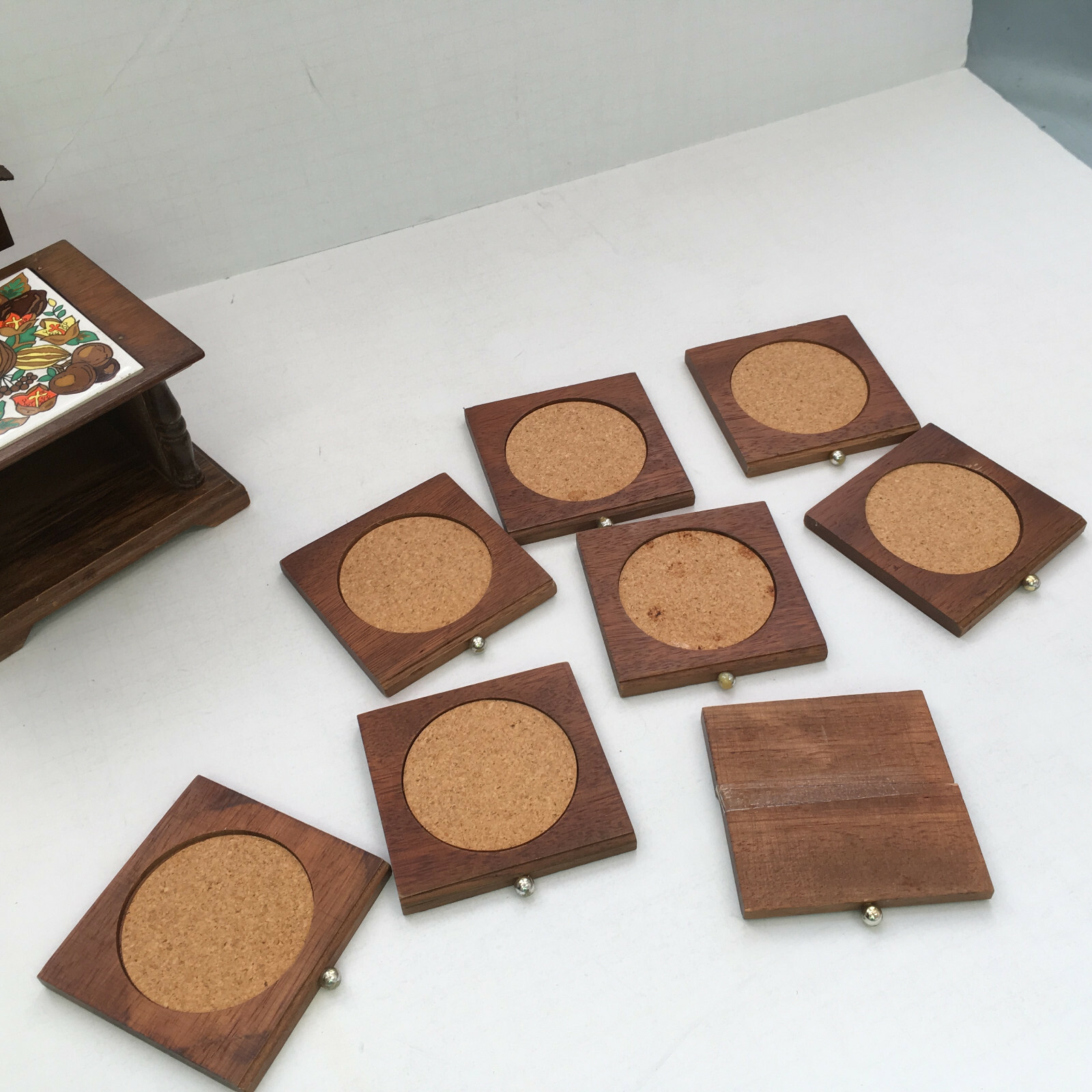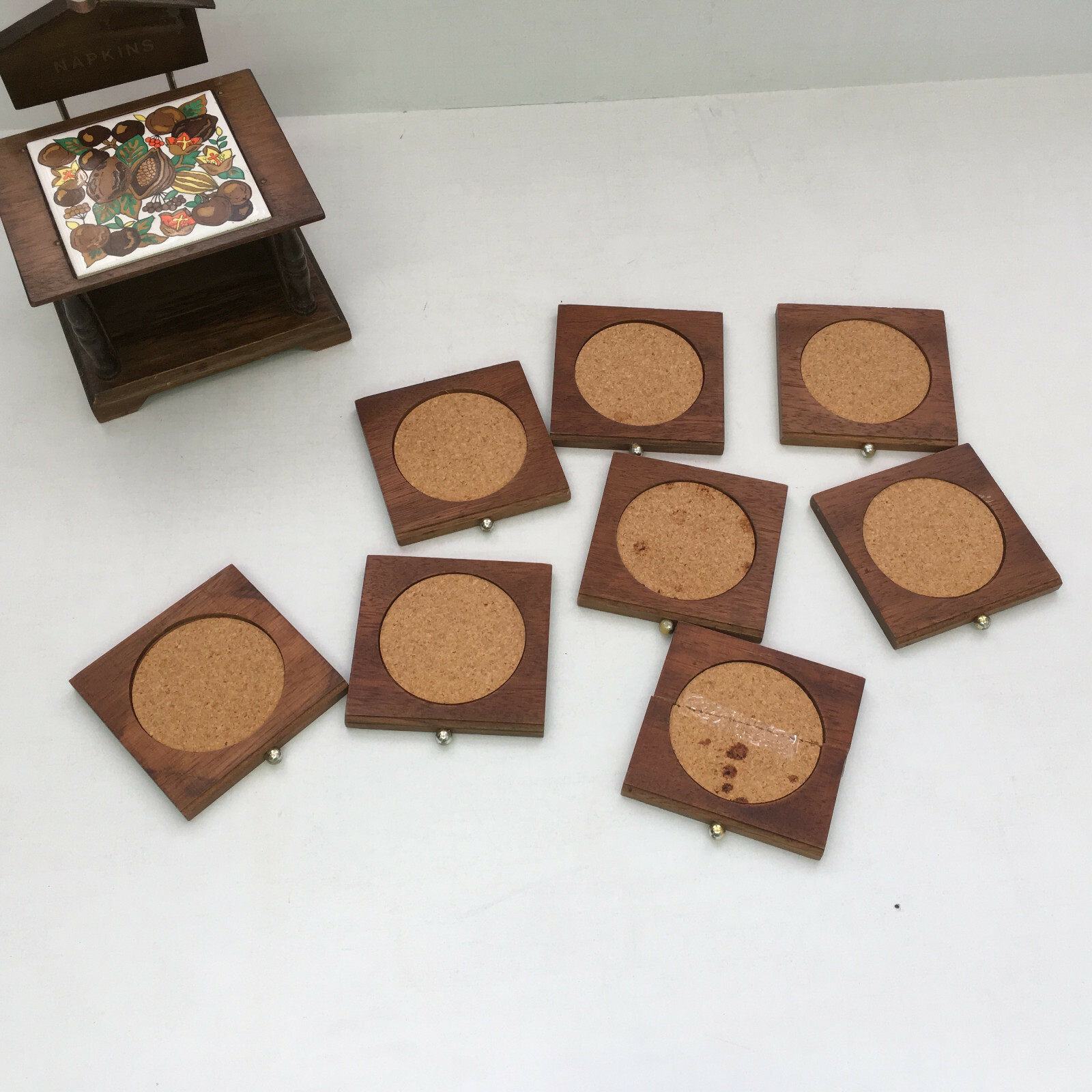Vintage wood cork coaster set napkin holder and 50 similar items