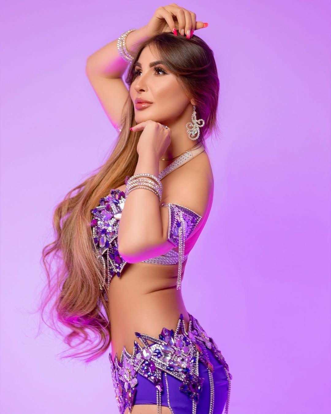Crystals Purple Belly Dance Costume: Custom Competition Performance Dress