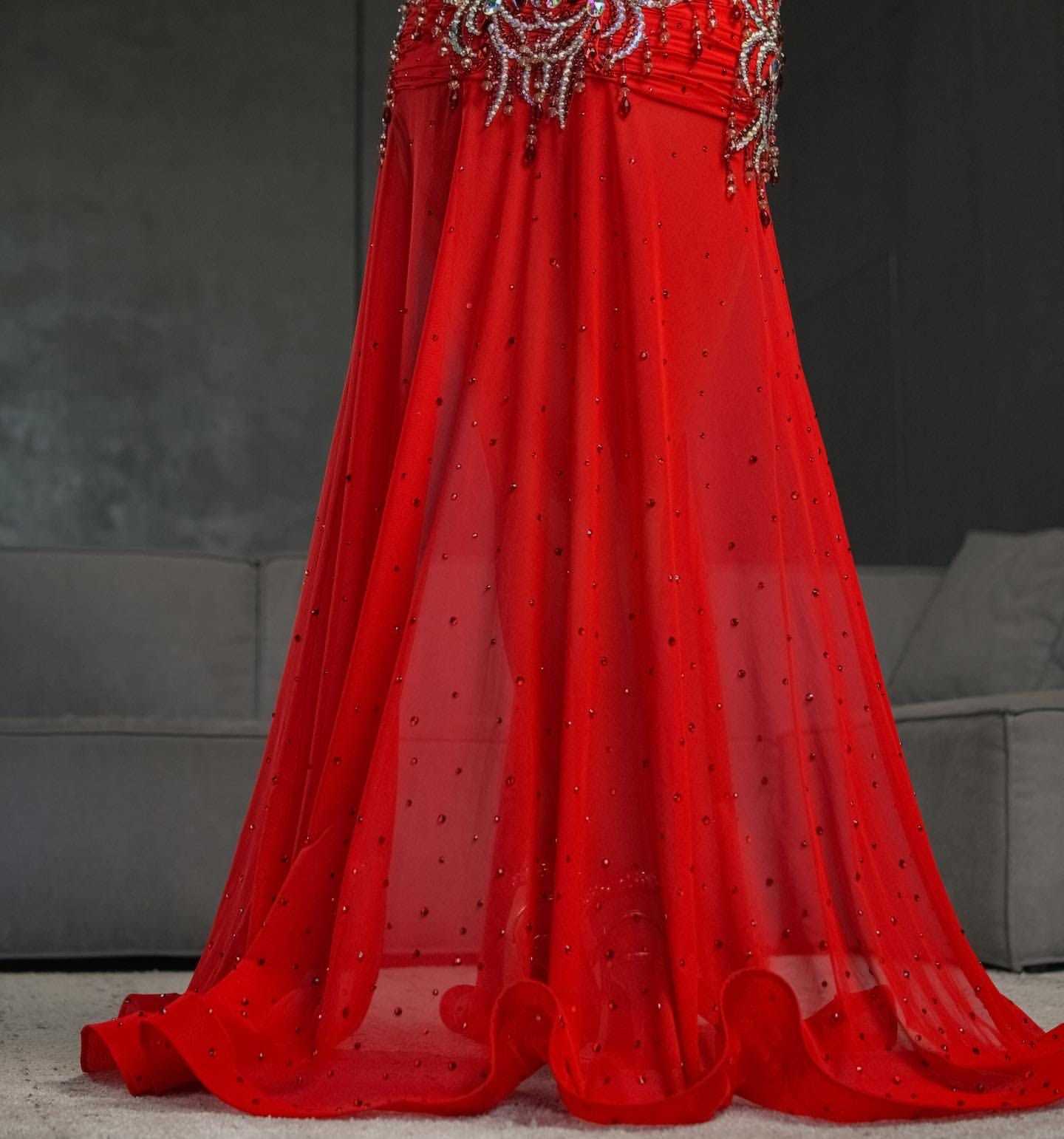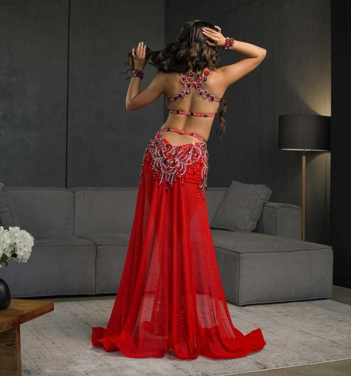 Red Crystal Belly Dance Costume: Made-to-Order Performance Dress