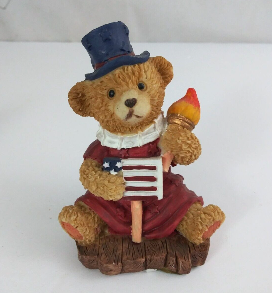 This is for a Vtg Set Of 2 Greenbriar Patriotic 4th Of July Sitting Teddy Bear 4" Figurines.
