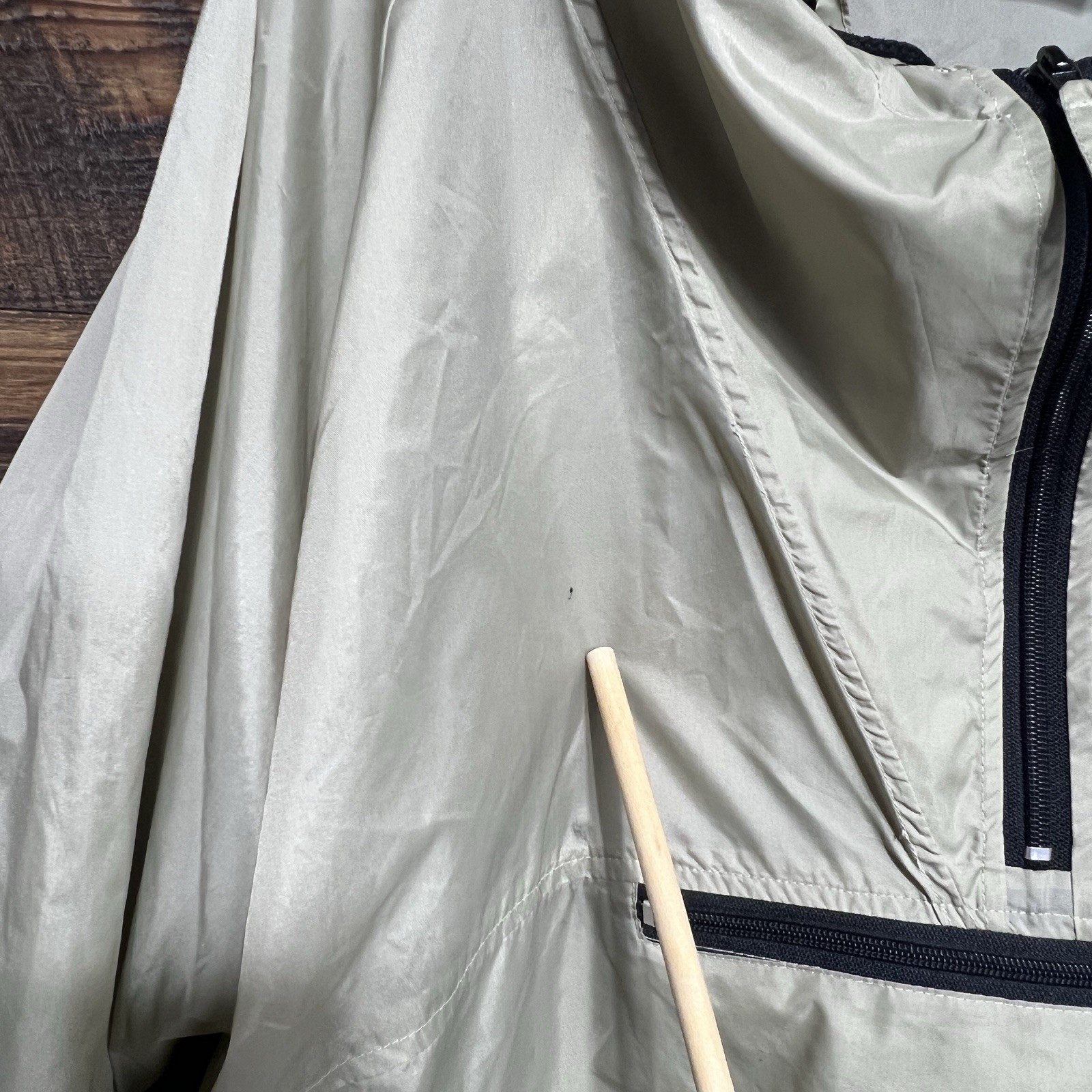 Tiny dot , see pictures The VGT Mickey Inc. L Jacket is an authentic Disneyland windbreaker from the year 1990, featuring the iconic Mickey Mouse character. This beige pullover jacket is suitable for adults in size L and is unisex, making it a versatile and nostalgic piece for any Disney fan. Made in Kuwait, this contemporary jacket is a must-have for collectors of Disneyana and fans of the franchise. Perfect for adding a touch of Mickey Mouse magic to any outerwear collection, this jacket is a true gem of a find for fans of the beloved character.