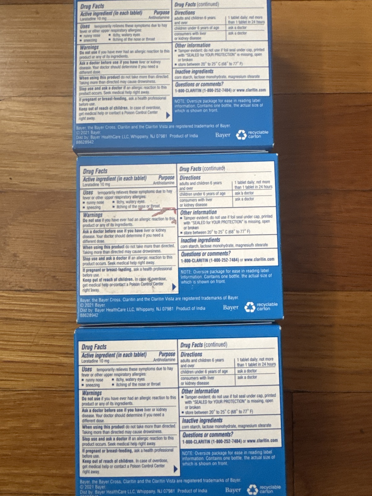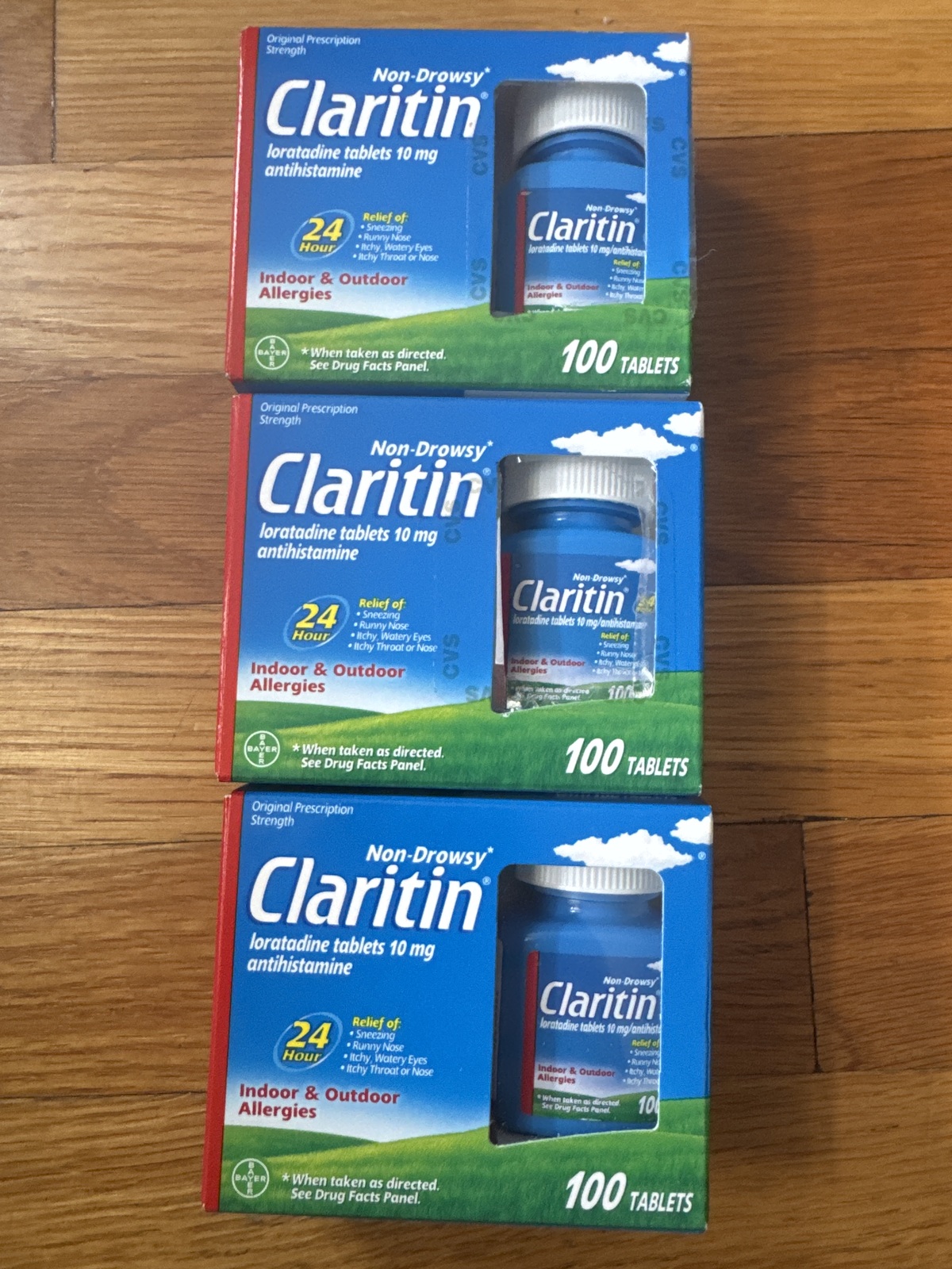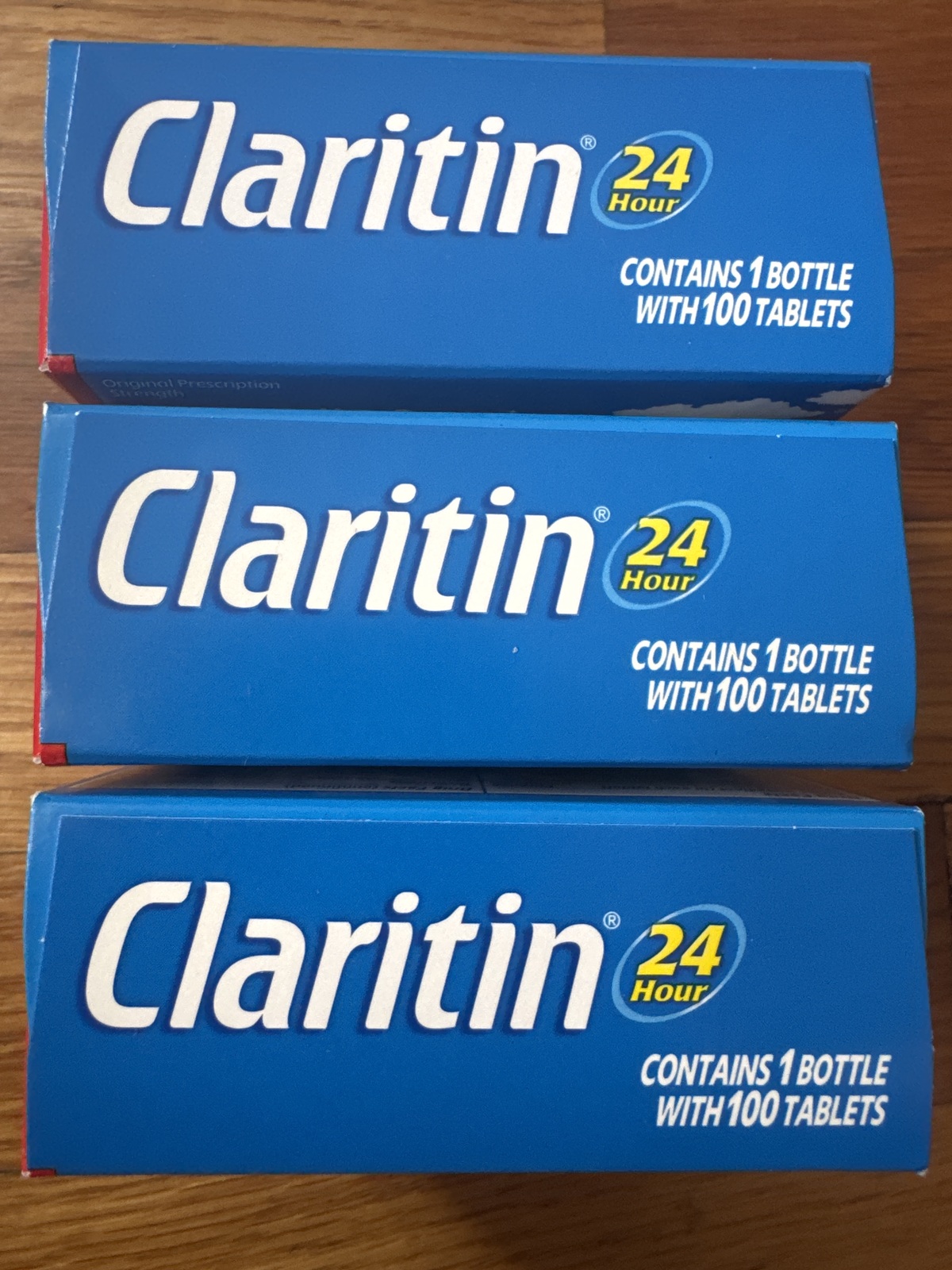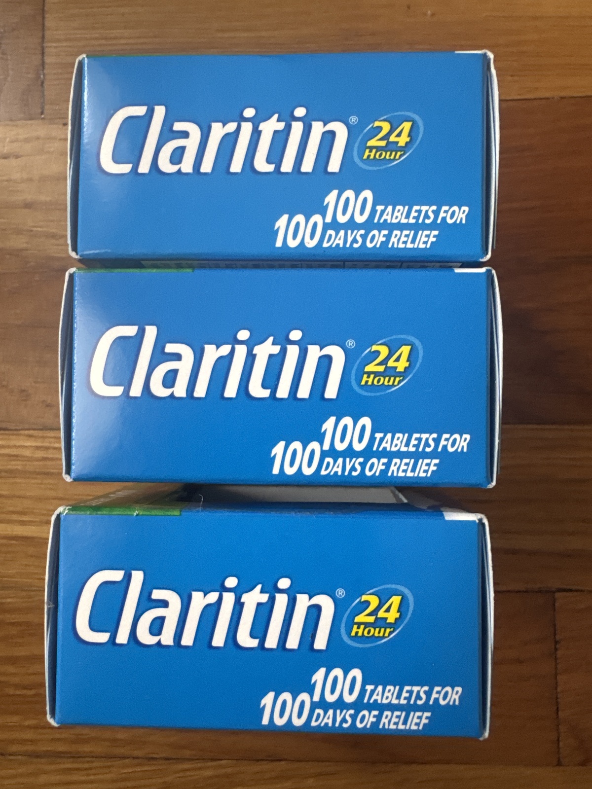 3-Claritin 24-Hour Indoor/Outdoor Allergy Relief 3 x 100 Tablets Each.