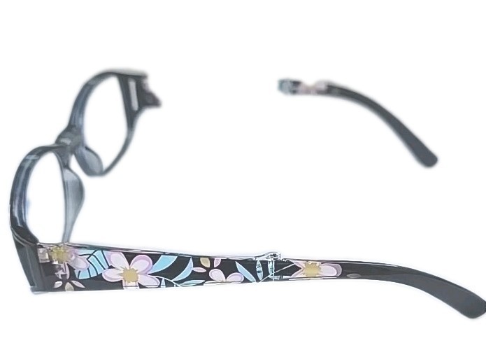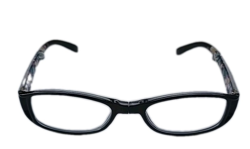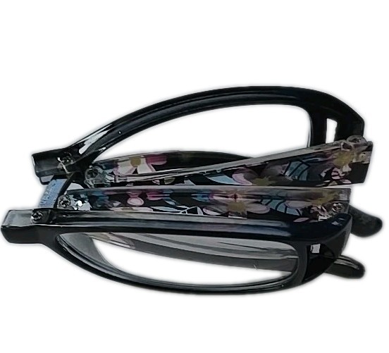 FOLDABLE ~ +2.00 ~ Collapsible ~ Reading Glasses ~ BLACK Frame ~ Floral Temples