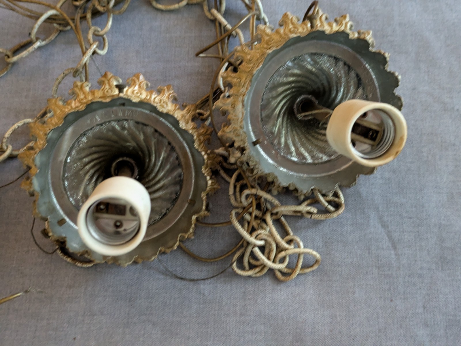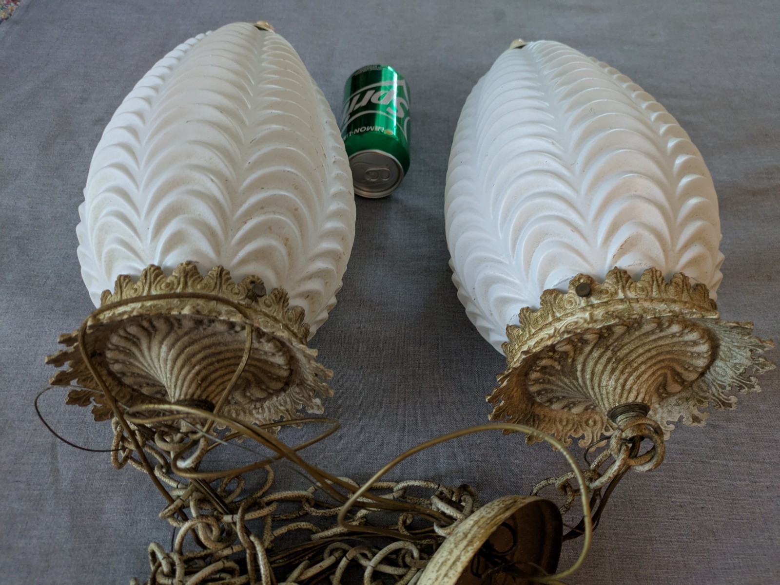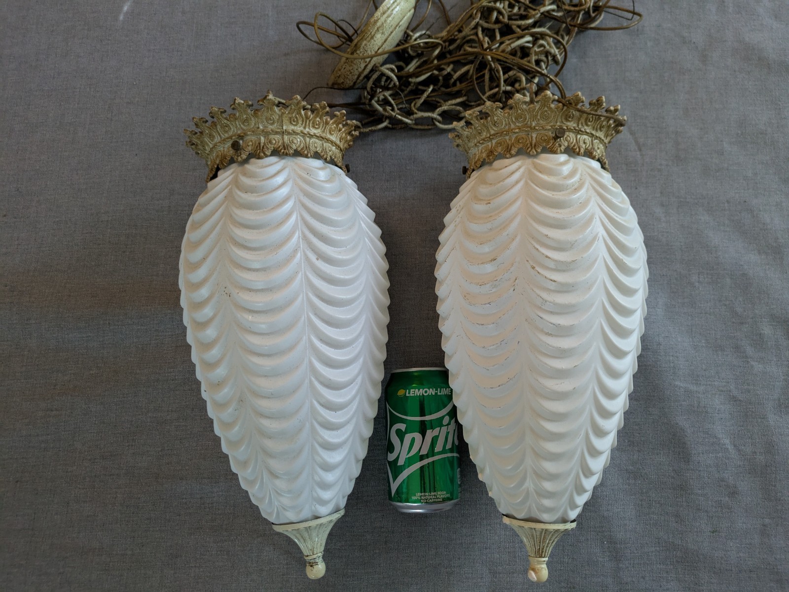 MCM White Scalloped Teardrop Double Swag Hanging Lamp Light MOE Thomas Ind