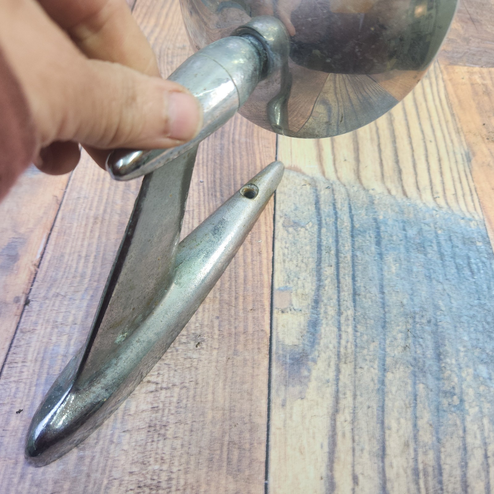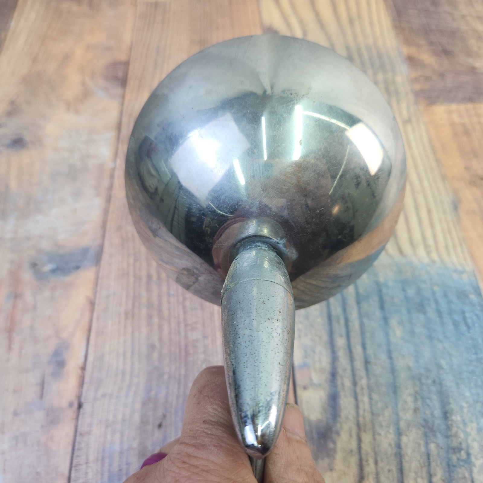 Vintage Ford M541B Chrome Side View 4.25in Round Mirror w 7 3/8 in Base OEM Used