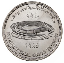1405-1985 Egipto 5 libras monedas de plata en BU, 25th Anni. Estadio de El Cairo KM 578