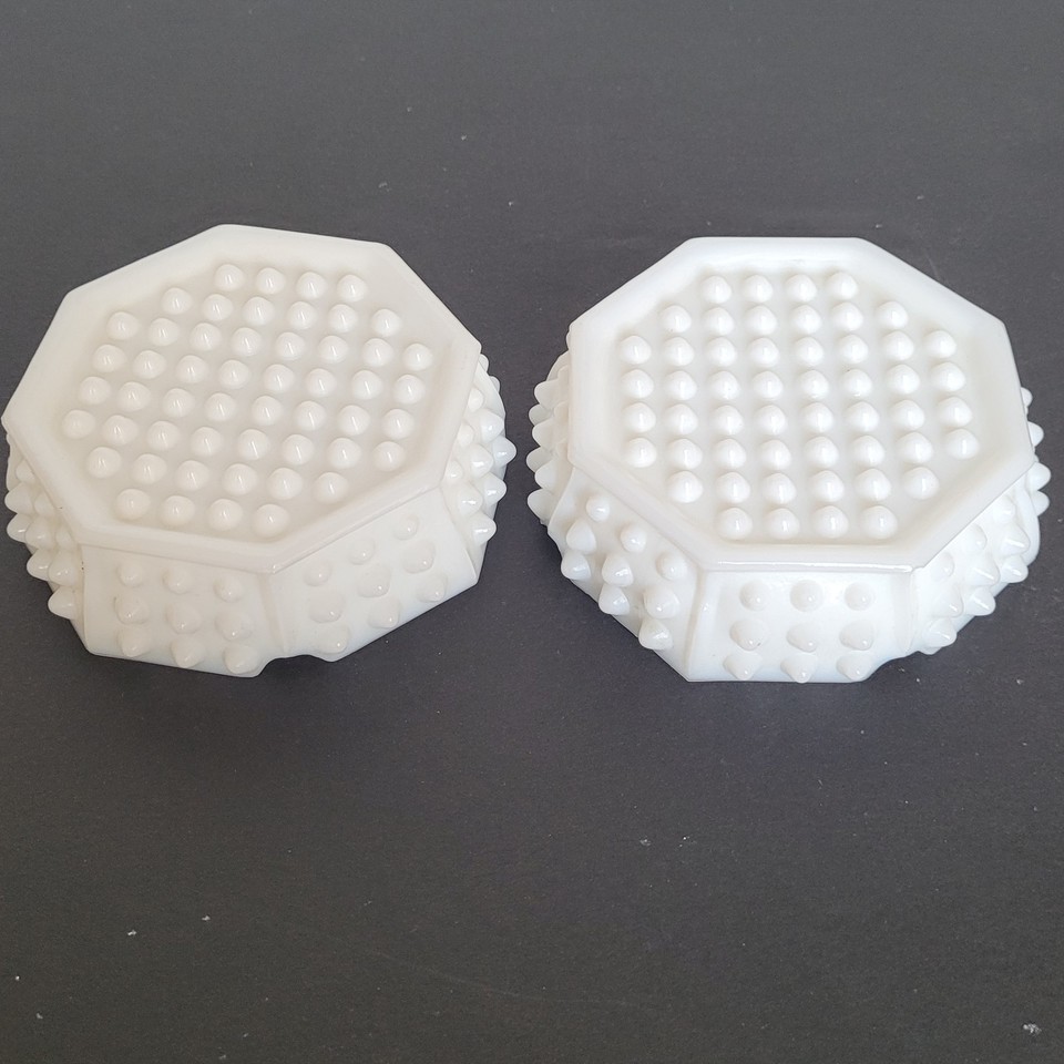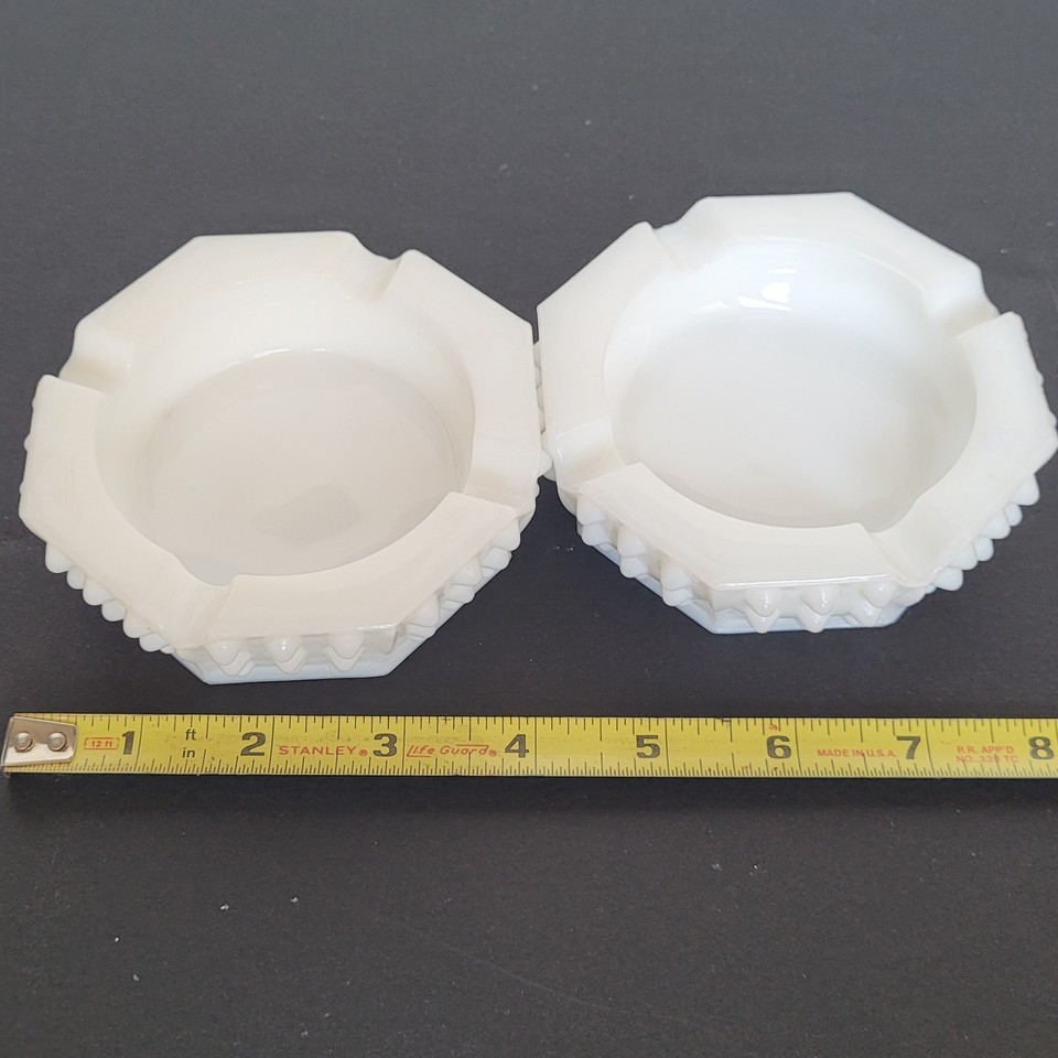 2 - Vintage Hobnail White Milk Glass Ashtray 4 Slot Octagon Mid Century MCM”