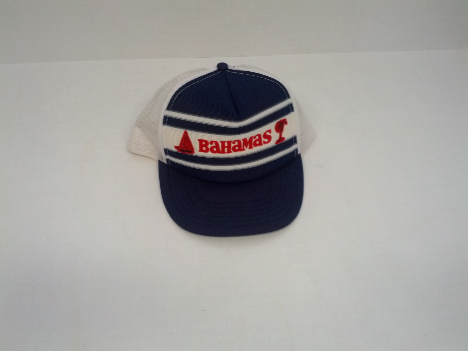 vintage white mesh snapback adjustable trucker hat Bahamas front souvenir