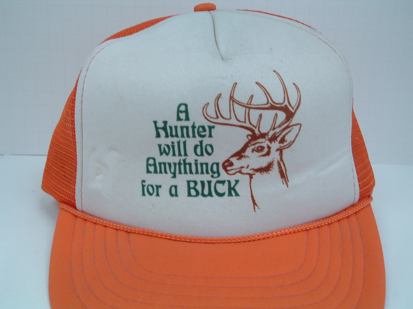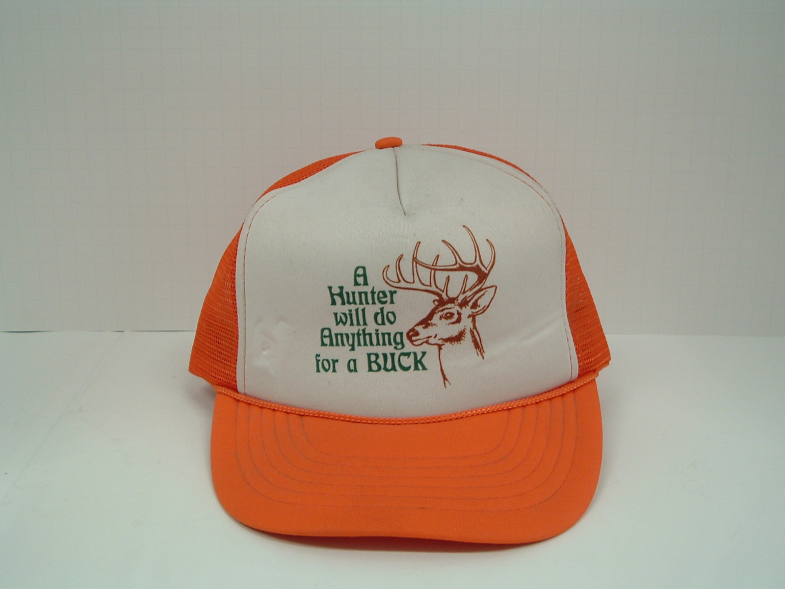Vintage orange mesh snapback trucker hat a hunter will do anything for a buck