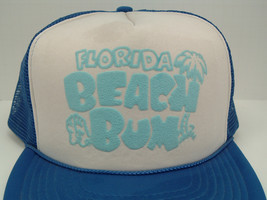 Vintage mesh blue snapback trucker hat Florida beach bum graphics front unisex
