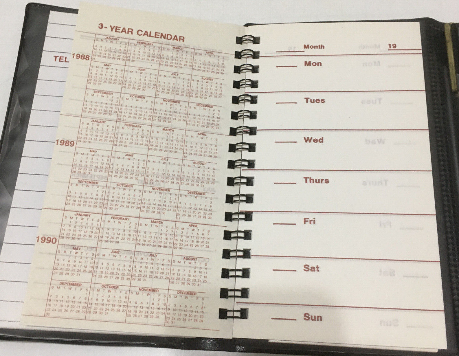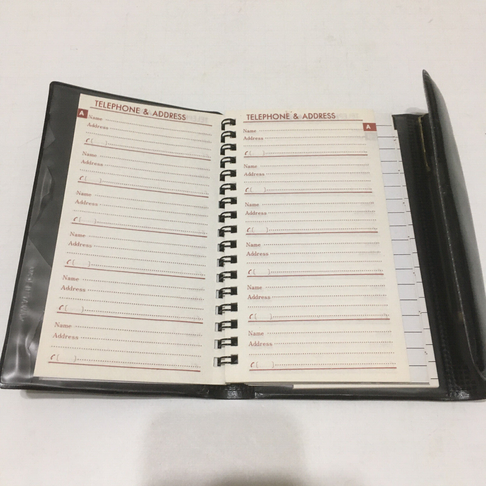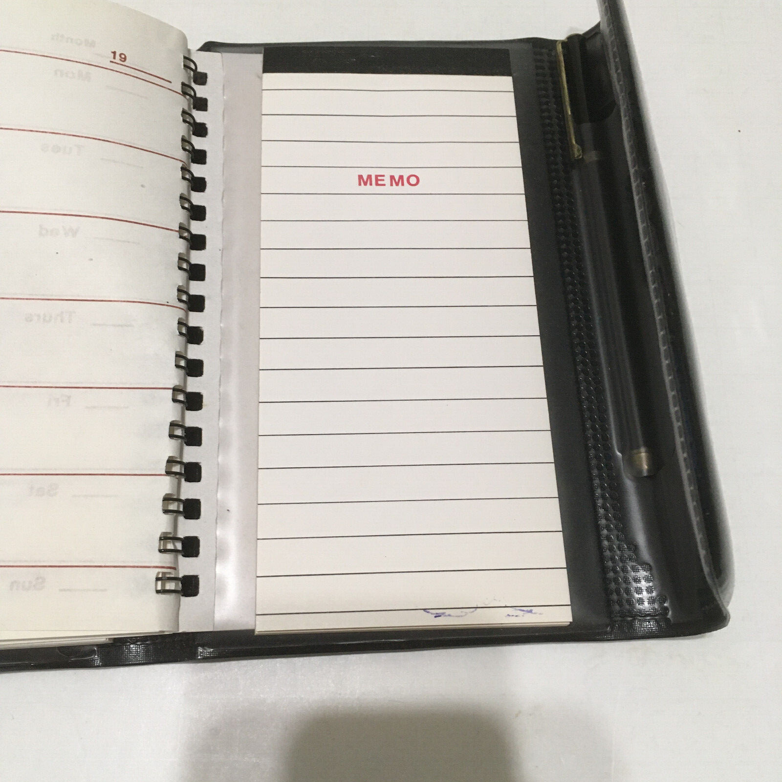 Vintage black vinyl planner telephone address weekly record and memo pad