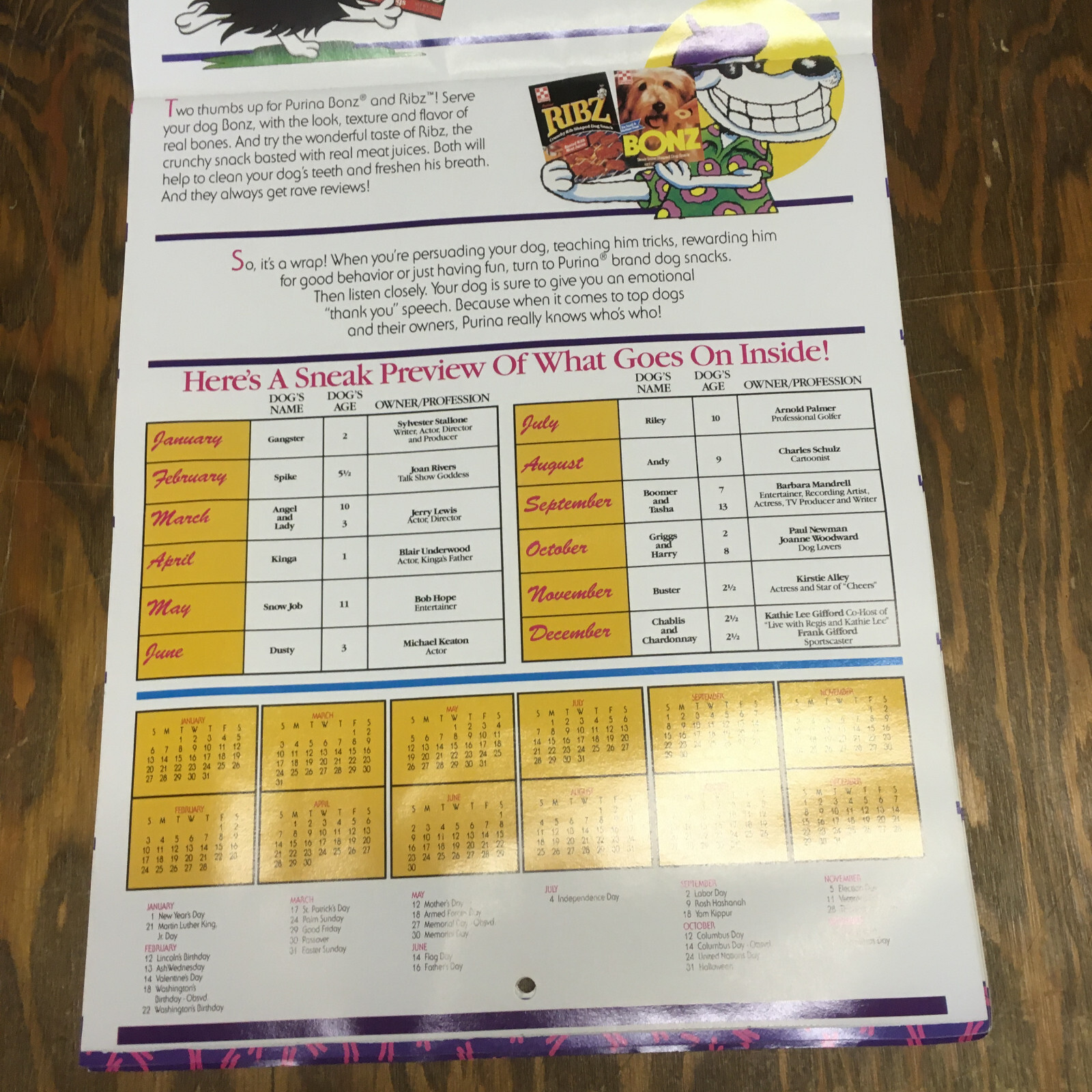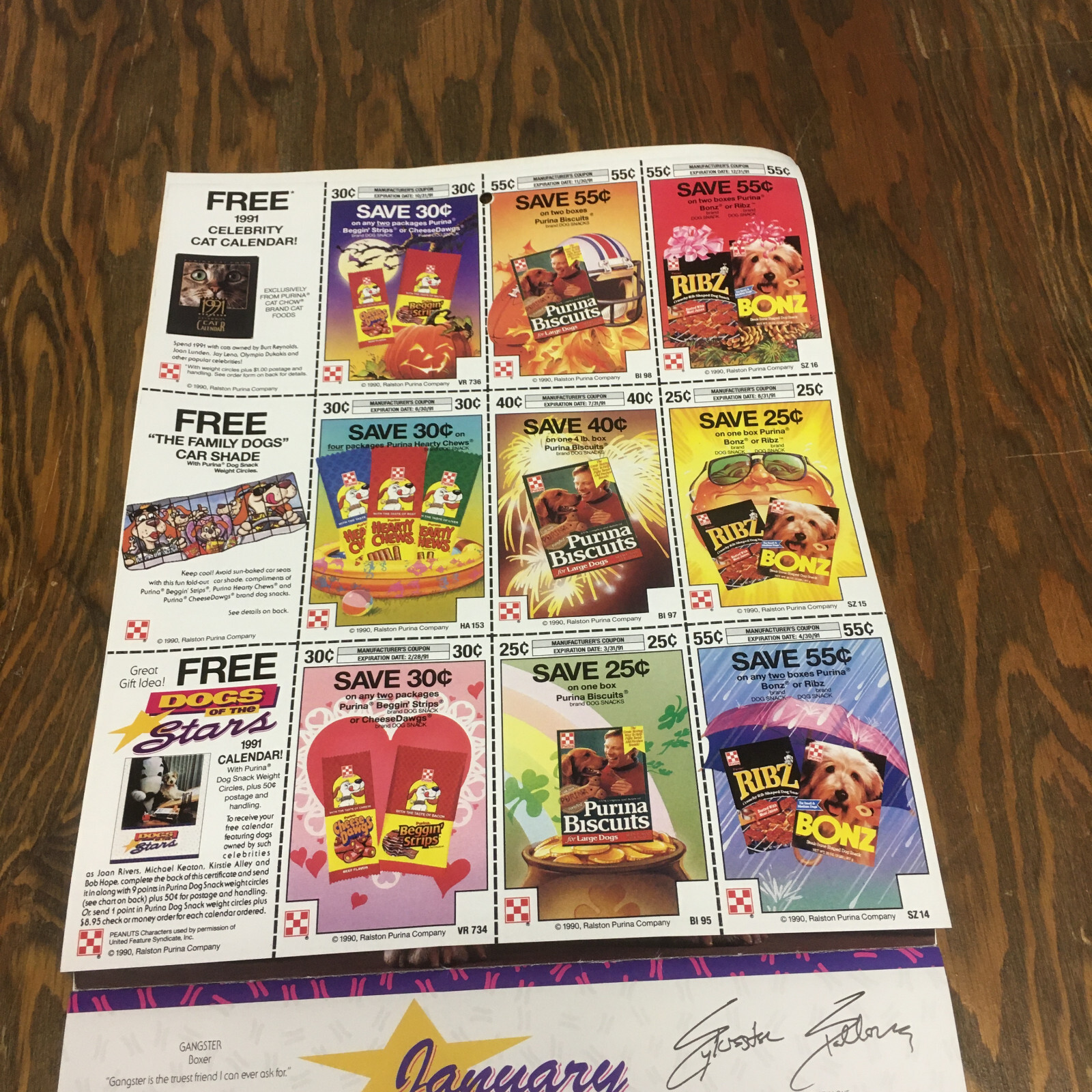 Vintage Purina dogs of the stars 1991 promotional calendar with expired coupons