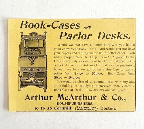 Arthur McArthur Book Case Desk 1894 Advertisement Victorian Furniture ADBN1i
