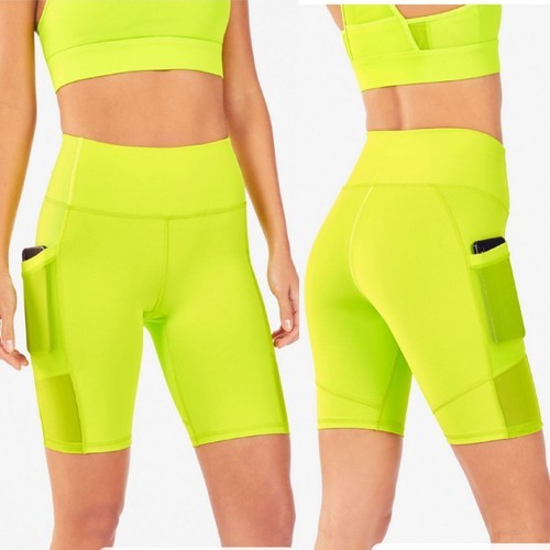 Fabletics Powerhold On-The-Go 9" Biker Shorts Size XS Citron Neon