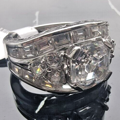 925 STERLING SILVER ASHER SHINY WHITE STONES RING SIZE 6