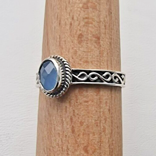 Elevate your jewelry collection with this vintage sterling silver ring, featuring a mesmerizing oval-cut tanzanite stone. The deep blue tanzanite, with its distinctive checkerboard cut, shines brilliantly within a secure bezel setting, highlighting its natural beauty. The band's 4 mm width provides a comfortable fit for a size 10.25 ring, making it an ideal choice for both everyday wear and special occasions.