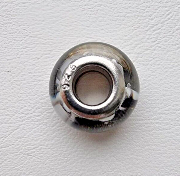 925 STERLING SILVER RETRO SLIDE CHARM MURANO GLASS BUBBLE BEAD BLACK SWIRLS