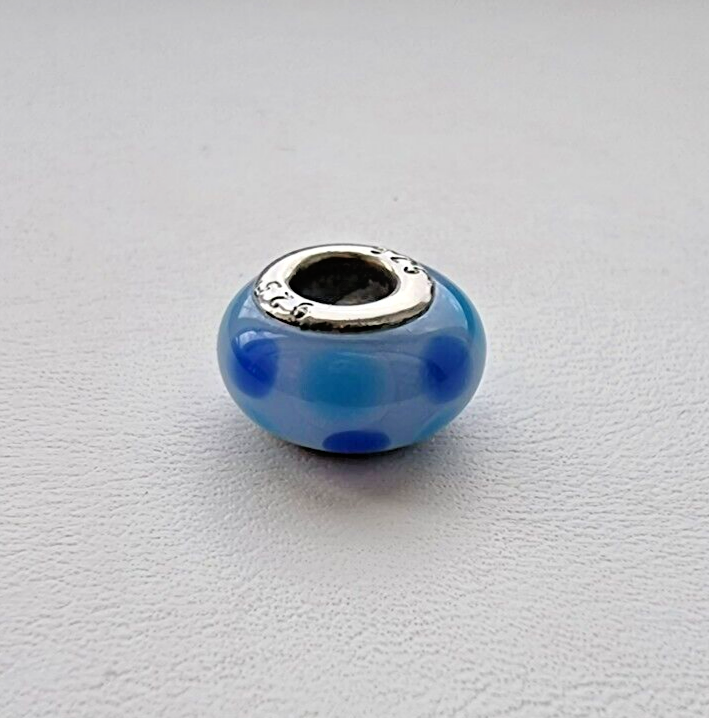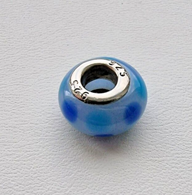 VINTAGE 925 STERLING SILVER BLUE MURANO GLASS CHARM