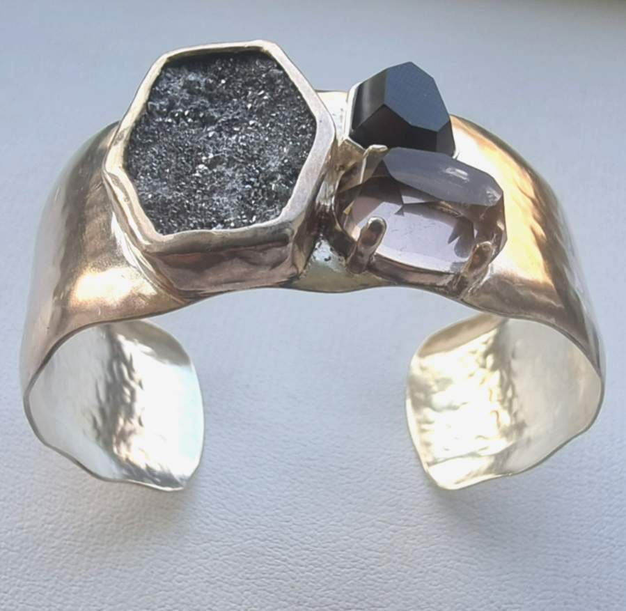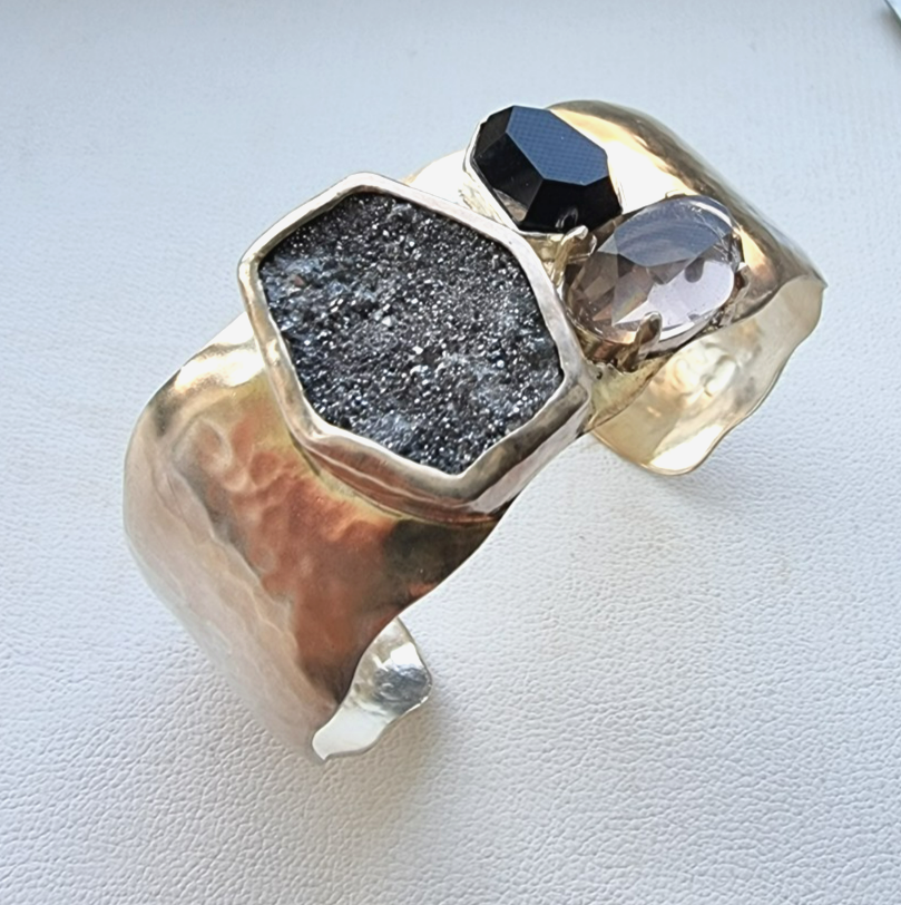 SILPADA 925 STERLING SILVER CRYSTAL CAVE DRUZY ONYX SMOKY TOPAZ CUFF BRACELET