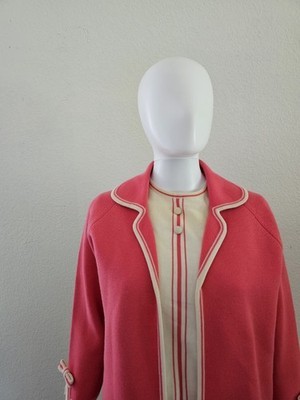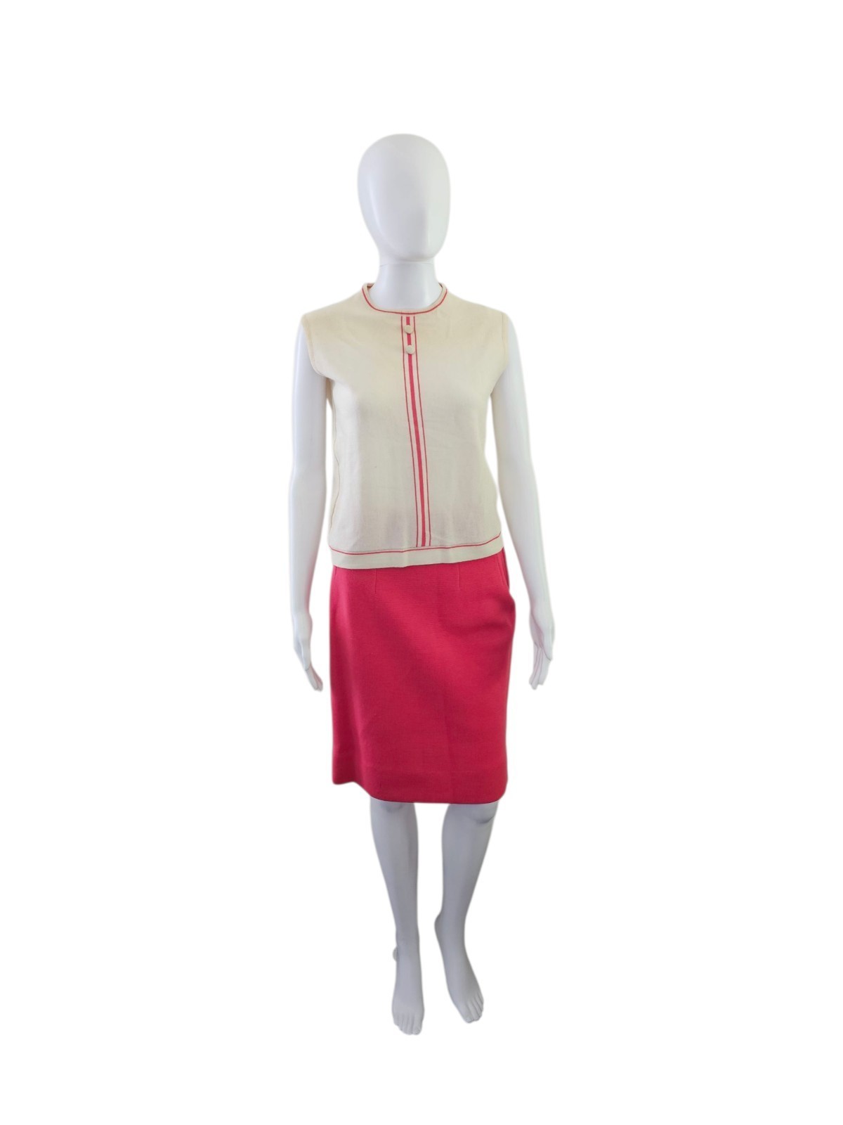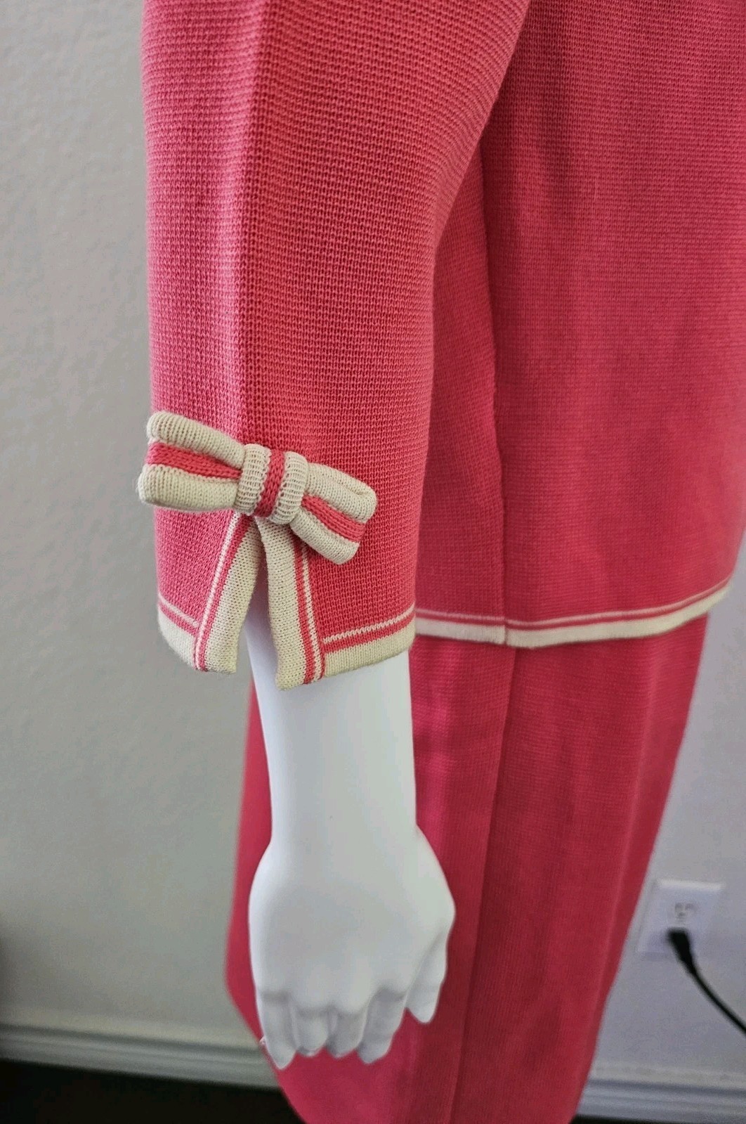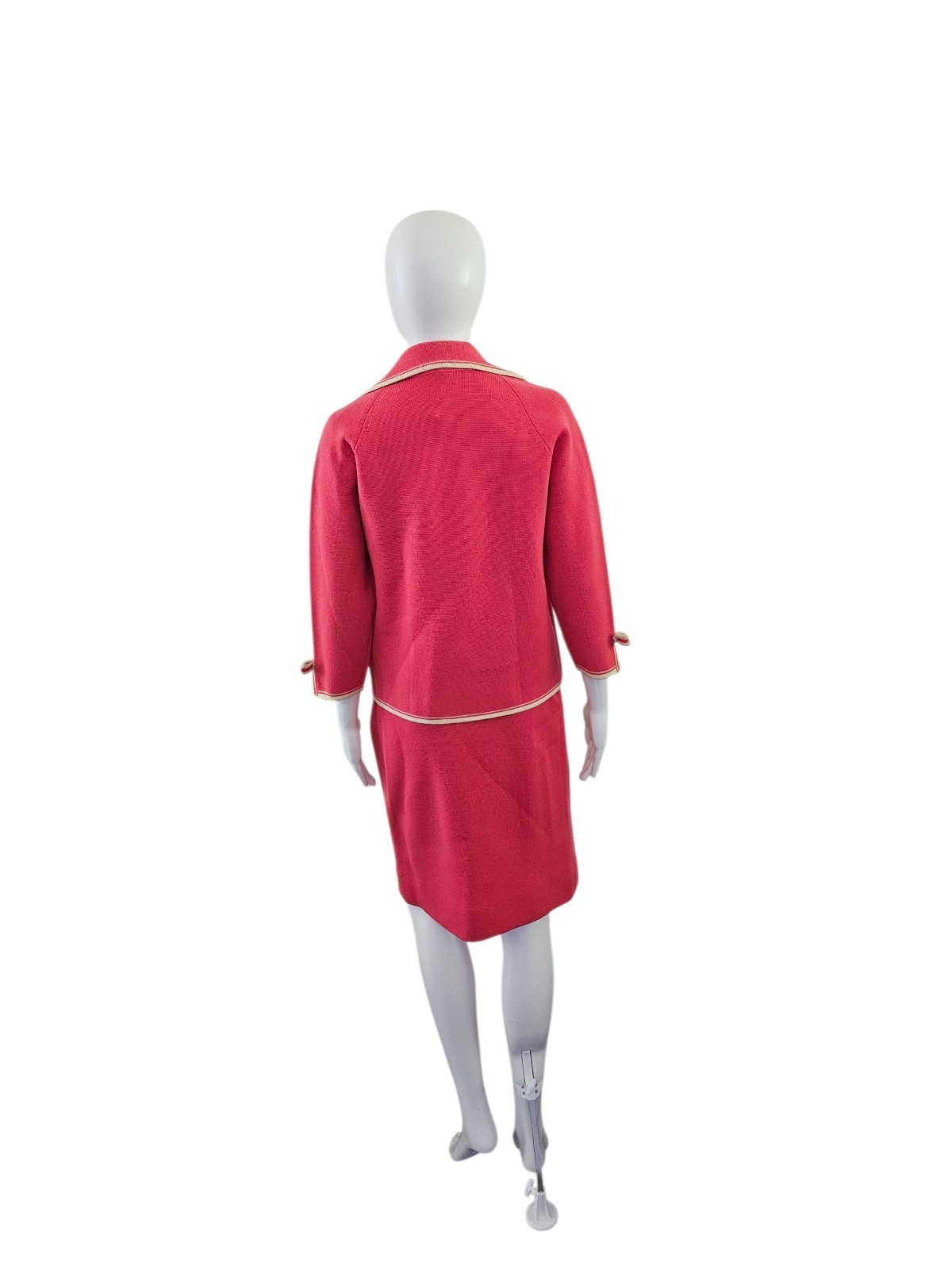 Vintage 1960s Madman Wool Knit Pink Skirt, Top And Jacket Bow