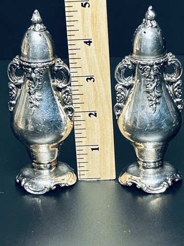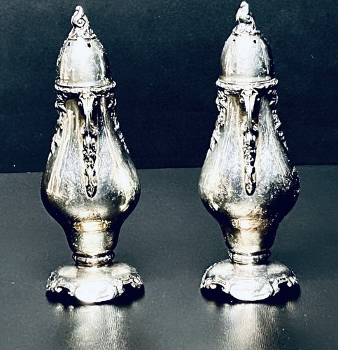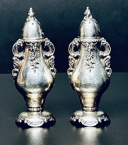 Wallace Baroque Silver Plated Salt & Pepper Shakers 5” Ornate VTG Discontinued