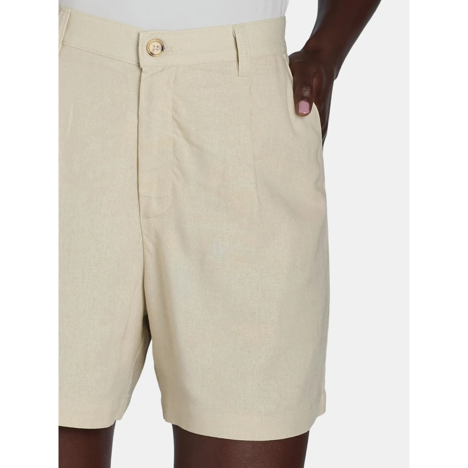 Time & Tru Women's Linen Blend Button Shorts MEDIUM (8-10) Papyrus Beige
