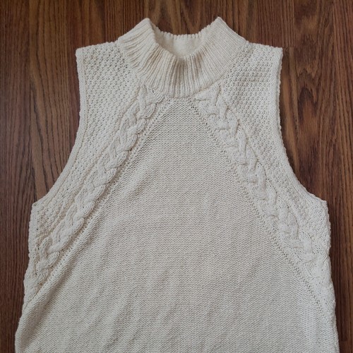 Madewell Sweater Dress Womens L Cream Cable Knit Cotton Sleeveless High Neck