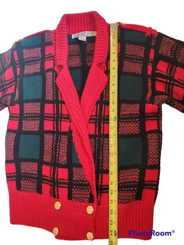 CARLISLE Sport Wool Tartan Plaid wool knit Cardigan Sweater Jacket Holiday