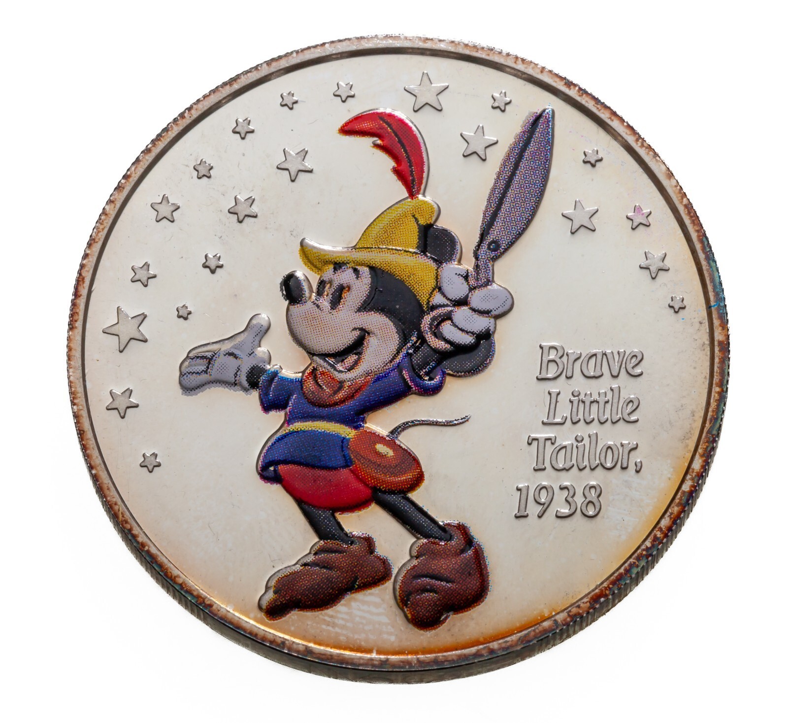 2003 Disney Mickey Mouse 75 Years - Brave Little Tailor 1938 1 Oz. Silver Round Colorized