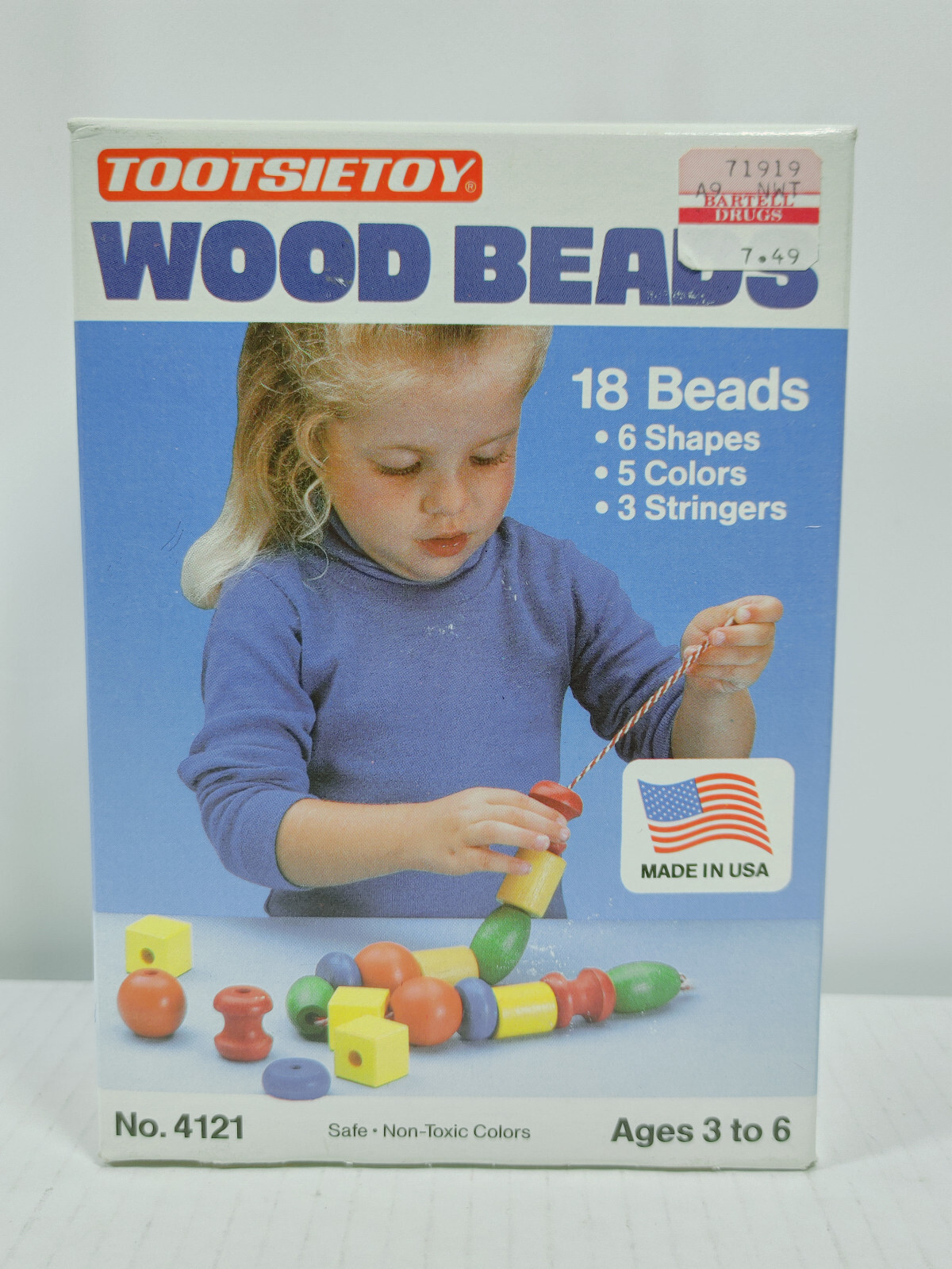 Vintage TootsieToy Wood Beads 4121 Set of 18 Wood Play Beads USA UNOPENED