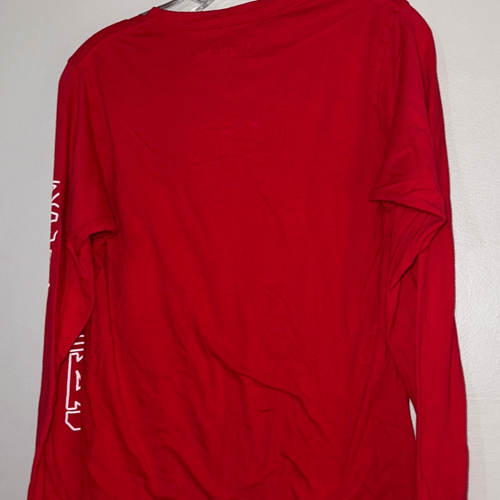 Stylish red long sleeve tee featuring a bold graphic design. Perfect for casual outings.