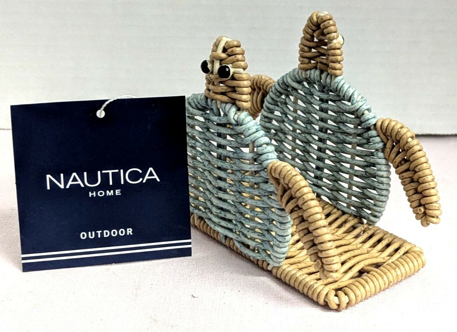 Elevate your table setting with the Nautica Home Resin Wicker Napkin Holder, intricately designed with a charming sea turtle motif.